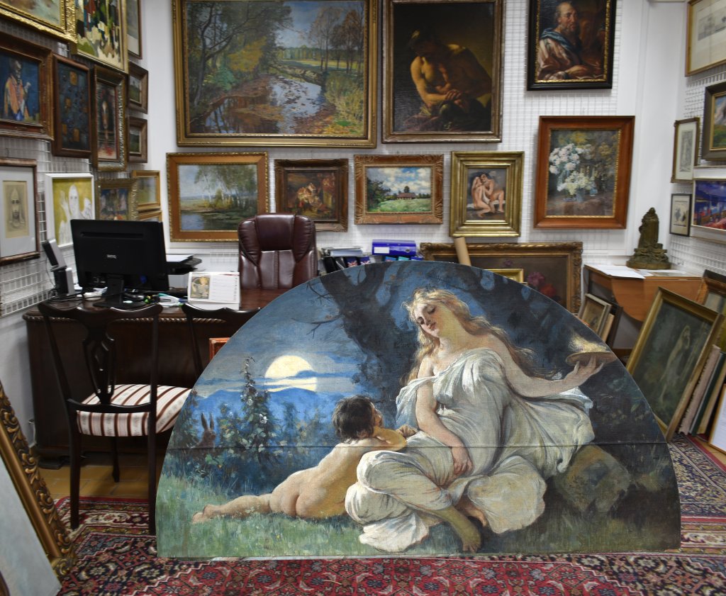 POPIS: Luneta - Olej na plátně, rozměry: 97 x 180 cm, rentoilováno, nerámováno. Obraz pochází ze zámku Všenory patřícímu rodu Nolčů