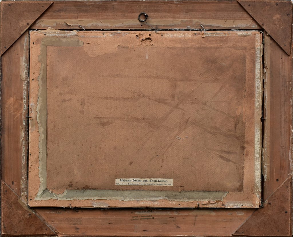 O AUTOROVI: Heinrich Dreber, známý jako Franz-Dreber (9. ledna 1822, Drážďany – 3. srpna 1875, Anticoli Corrado), byl německý krajinář. Žil v domě příbuzného, jehož jméno Franz přijal, navštěvoval Akademii svého rodného města a poté ateliér Ludwiga Richtera. Po získání zlaté medaile pobýval nějaký čas v Mnichově a na jaře 1843 odešel jako vystavovatel drážďanské akademie do Říma, kde se stal členem Akademie sv. Lukáše a strávil téměř celý zbytek svého života. Jeho studium italské přírody mělo největší vliv na jeho tvorbu a zároveň dojem, který na něj udělali moderní francouzští krajináři, zvýšil jeho touhu po měkké fúzi barev. Zemřel v Anticoli di Campagna nedaleko Říma v roce 1875. Jeho obrazy, které byly společně vystaveny v roce 1876 v Národní galerii v Berlíně, jsou až na výjimky v rukou soukromých osob; v Berlínské galerii jsou dvě – "Krajina s lovem Diany" a "Podzimní ráno v pohoří Sabine".