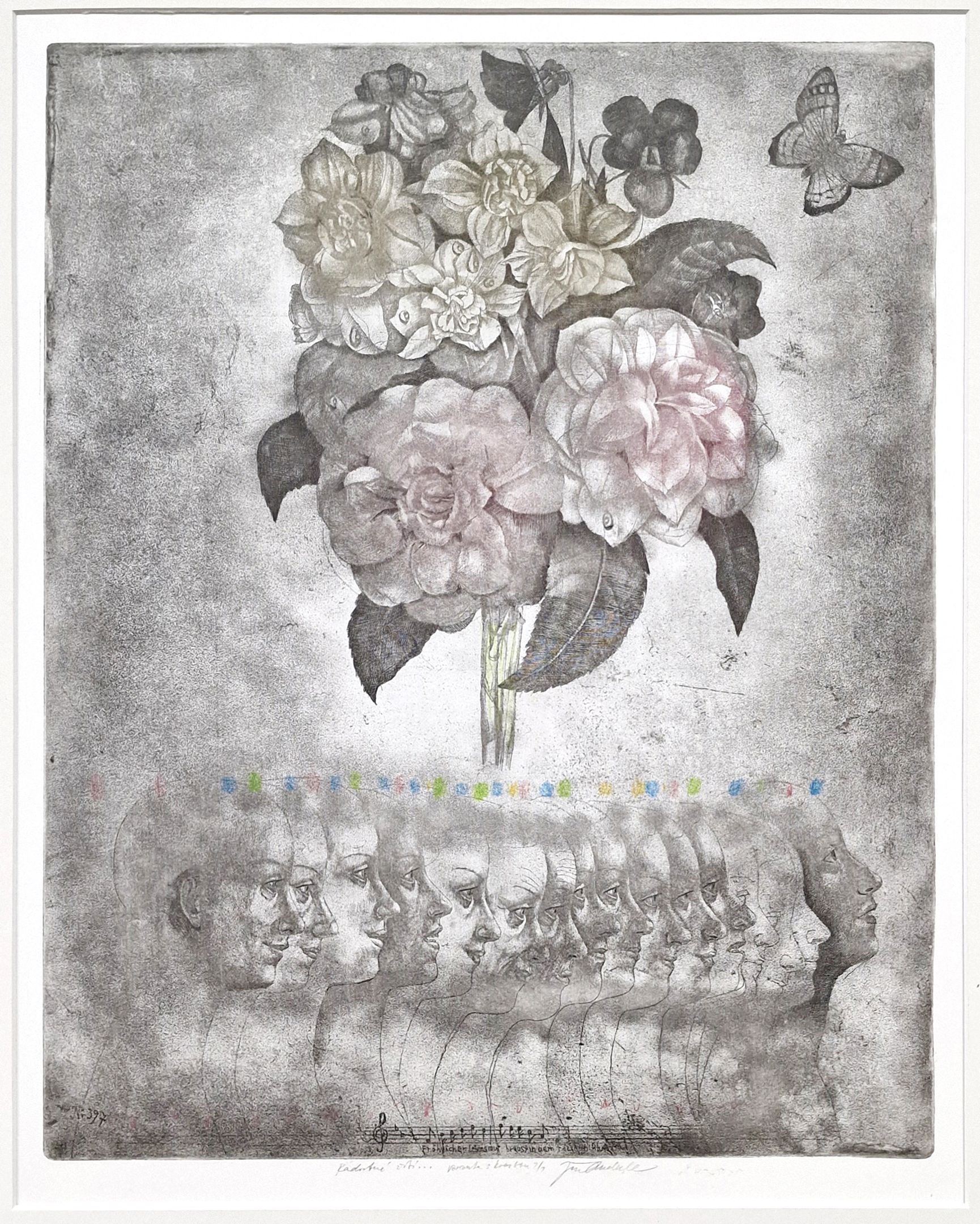 O AUTOROVI: Narodil se 14. 9.1936 v Pavlíkově u Rakovníka. Malíř, grafik a ilustrátor. V letech 1955 – 1961 studoval na VŠUP a AVU v Praze, obor malba a grafika u profesora A. Pelce a V. Silovského. V letech 1969 – 1973 byl asistentem Z. Sklenáře a J. Trnky na VŠUP v Praze. Byl členem SČUG Hollar. Jeho počátky ovlivnilo působení v Černém divadle J. Srnce v letech 1961 – 1969, od roku 1966 patří k předním reprezentantům české grafiky v zahraničí. V desítkách grafických a obrazových cyklů vytvořil jeho z nejnaléhavějších a nejpůsobivějších podobenství současného člověka v jeho kontextech mytologických, historických, sociologických. Významný je rovněž cyklus obrazů, kreseb a grafik Iluze a realita, využívající dobové fotografie. Zúčastnil se kolem dvou set kolektivních výstav v zahraničí, kde byl odměněn třiceti čtyřmi cenami. Svým imaginárním realismem ovlivnil tvorbu nejméně jedné generace českých grafiků. Je zastoupen ve sbírkách NG Praha, Centre Georges Pompidou Paříž, Metropolitan Museum of Modern Art New York, Galerie Uffizi Florencie, Stedelijk Museum Amsterodam aj. Výtvarné centrum Chagall