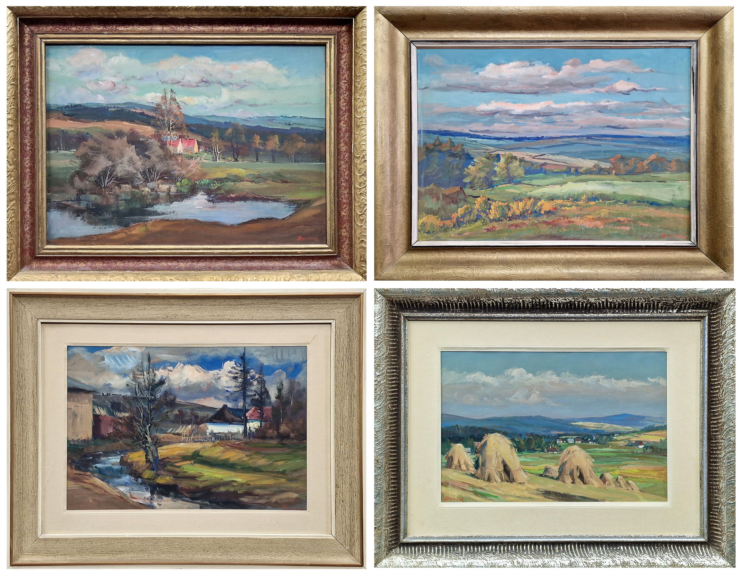 POPIS: 4 X tempera na lepence, rozměr 49 x 69,5 cm, zaskleno, 44 x 62,5 cm, rozměr ve výřezu 32,5 x 48 cm, zaskleno, rozměr ve výřezu 28 x 41,5 cm, zaskleno