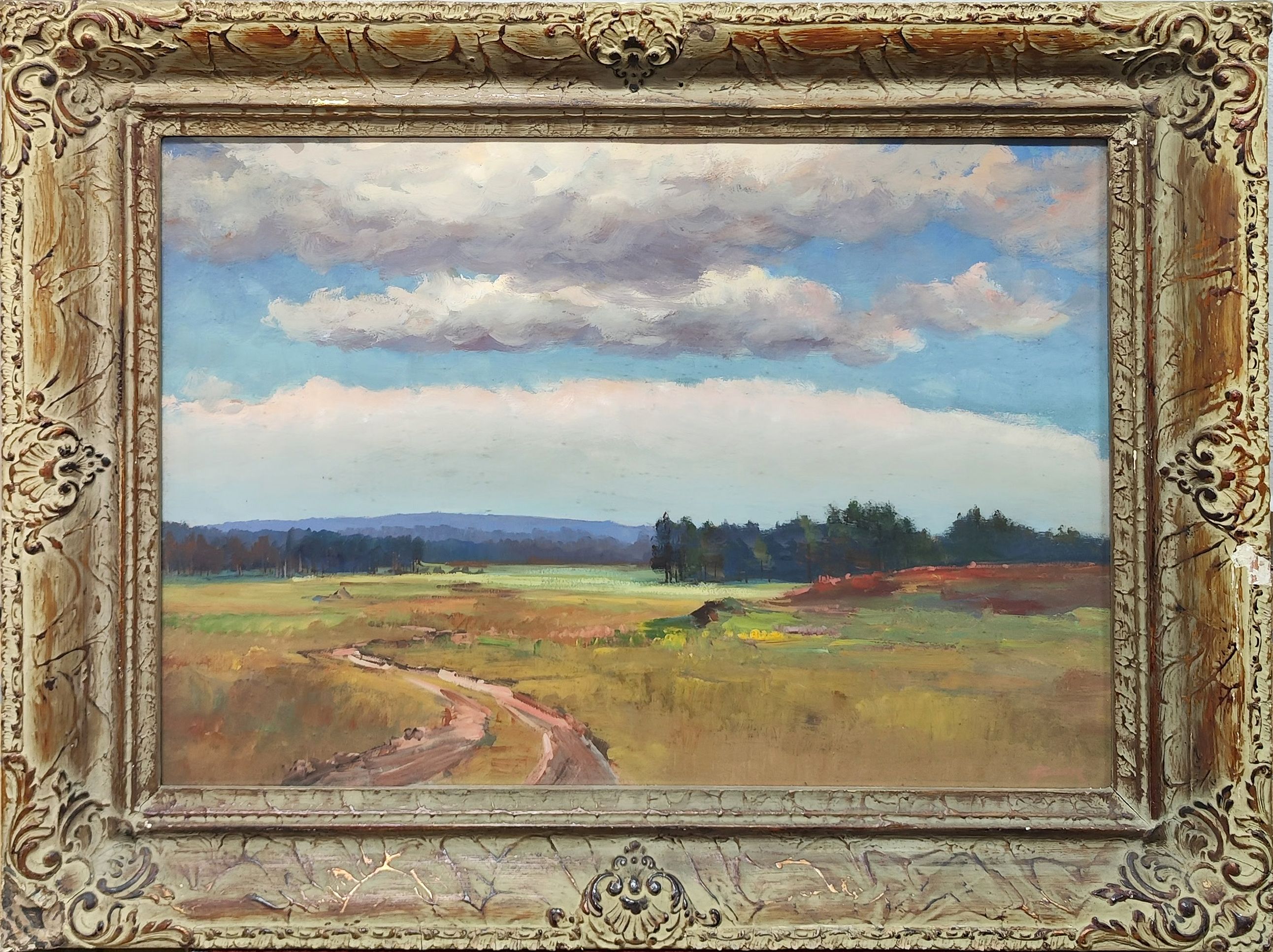 POPIS: Olej na lepence, rozměr 51 x 70 cm, zaskleno