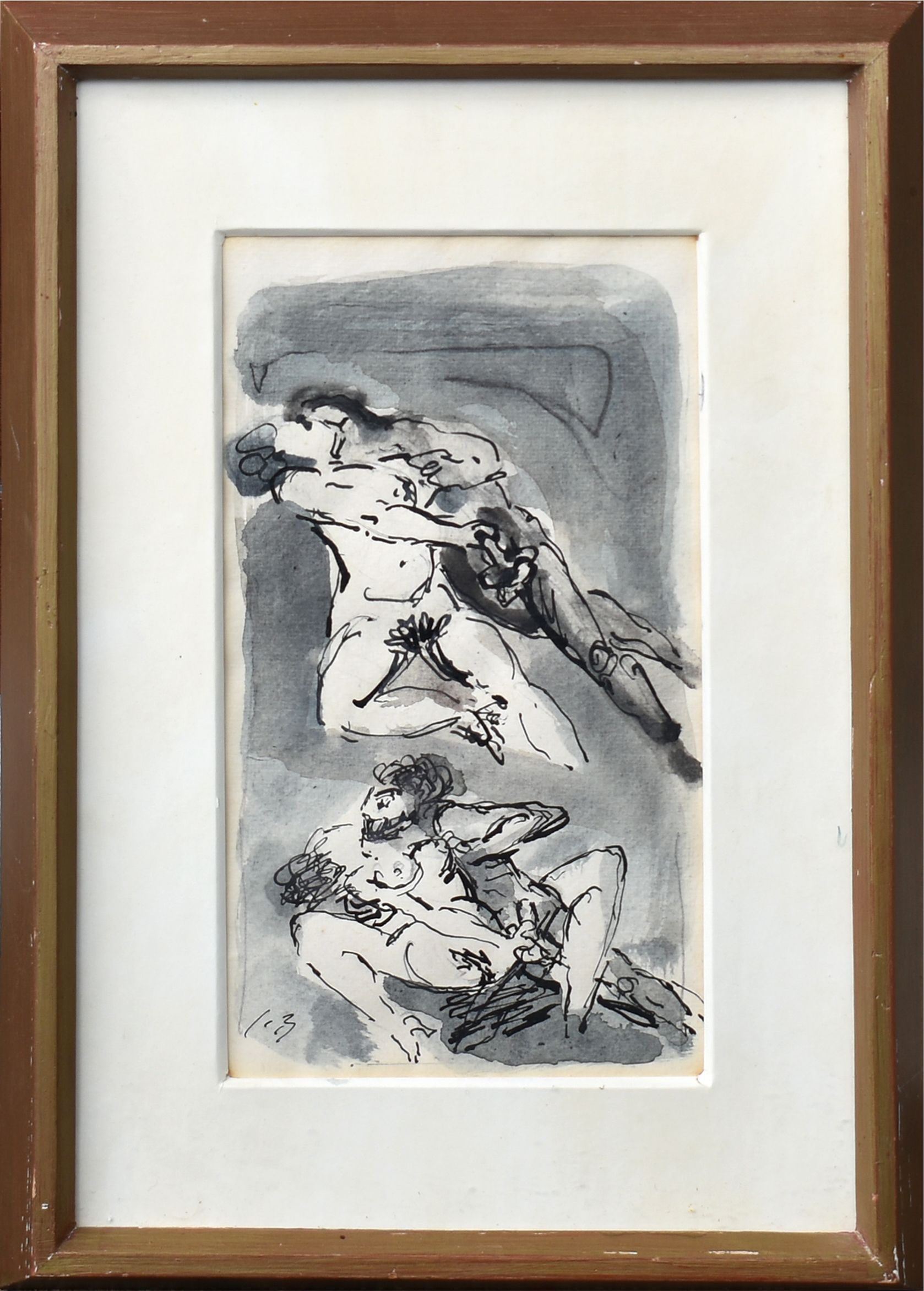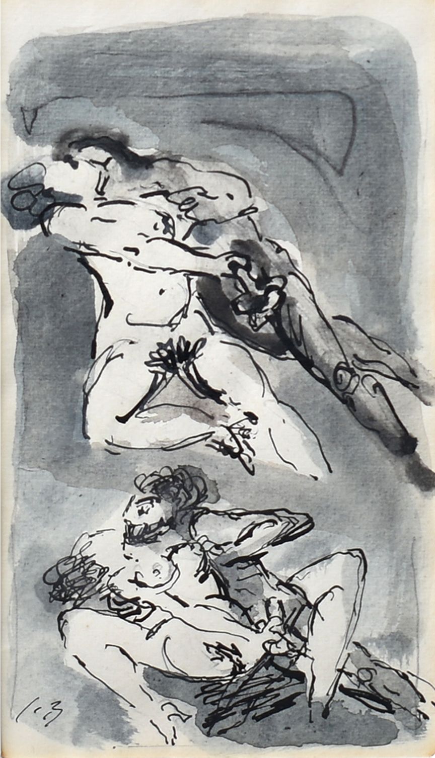 POPIS: Akvarel + tuš, rozměry ve výřezu pasparty: 25,5 x 14,5 cm, zaskleno