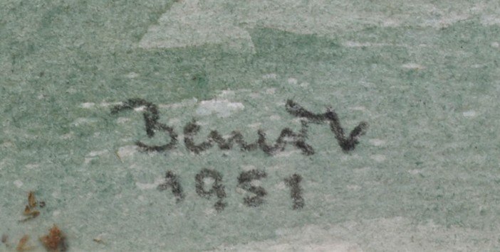 POPIS: Akvarel, rozměr ve výřezu pasparty: 22 x 27,5 cm, zaskleno, datováno 1951