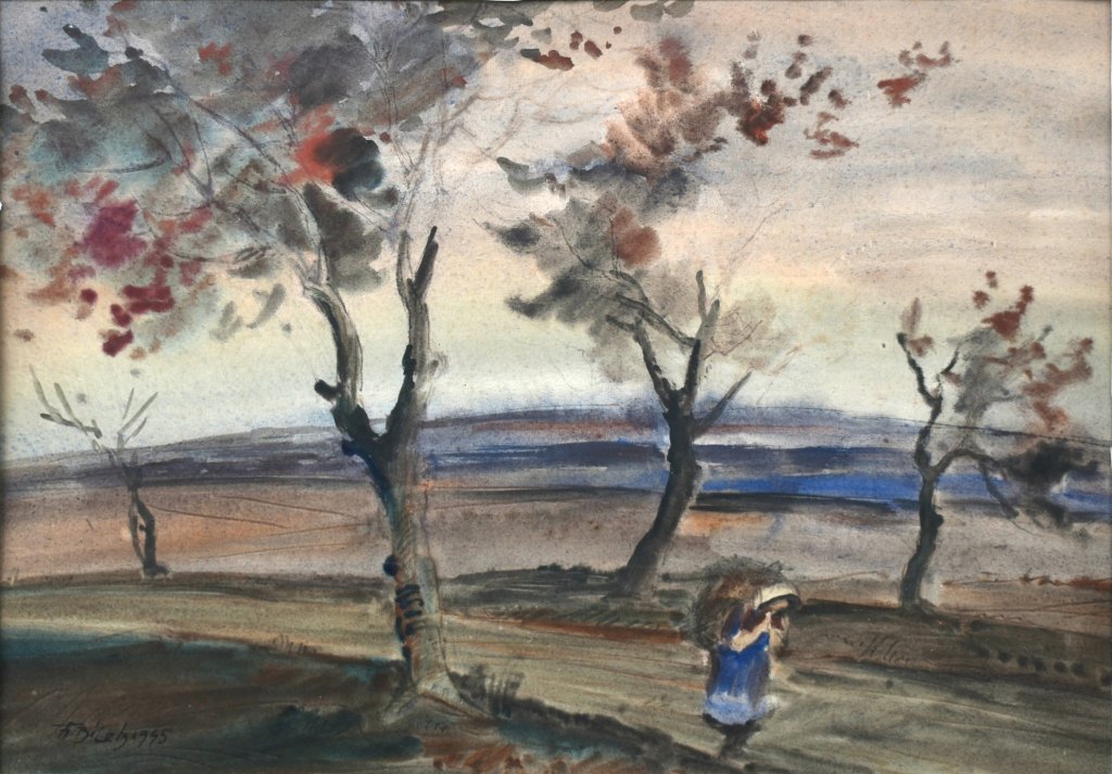 POPIS: Akvarel, rozměry ve výřezu pasparty: 25 x 35 cm, zaskleno