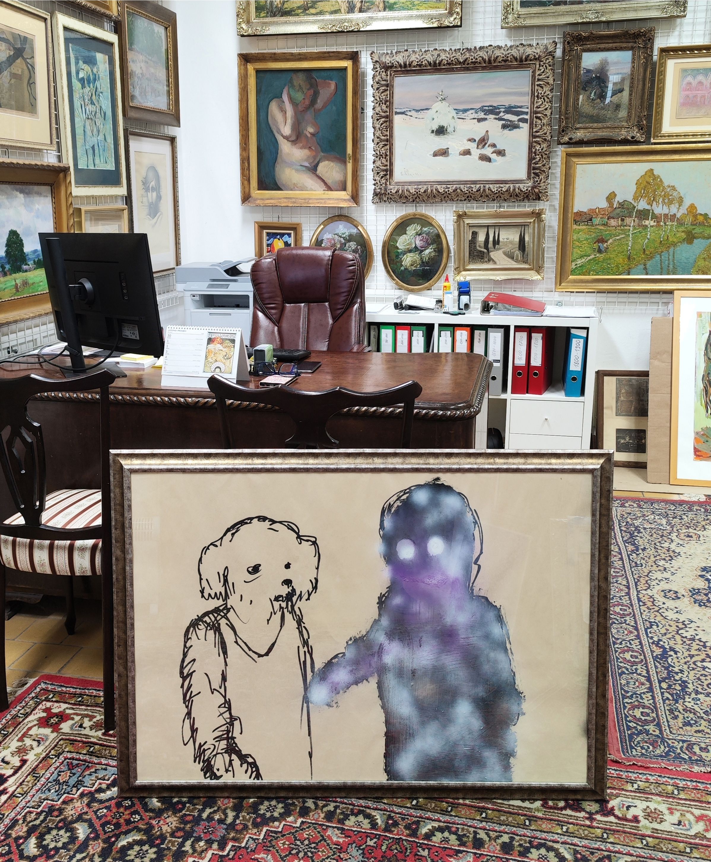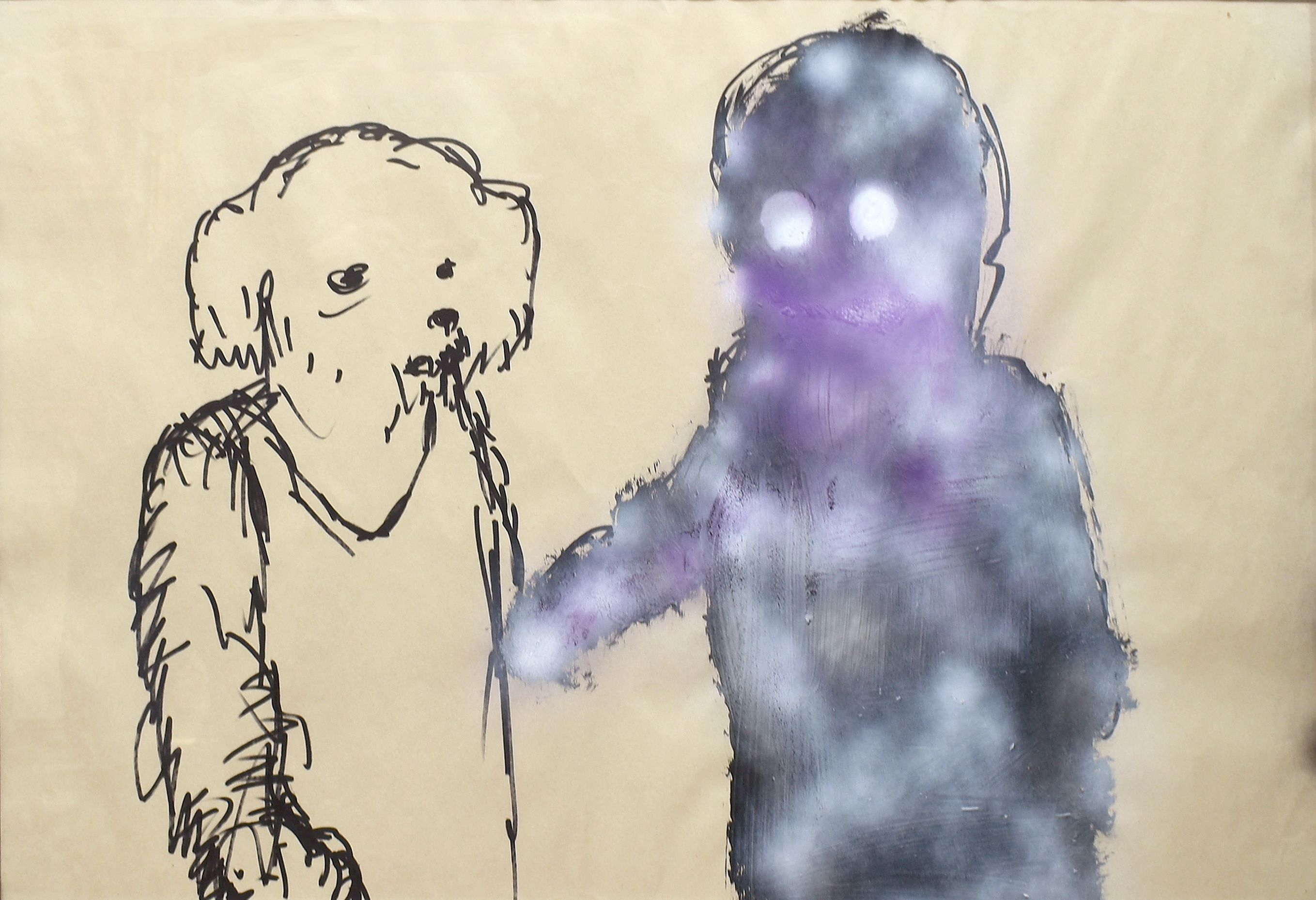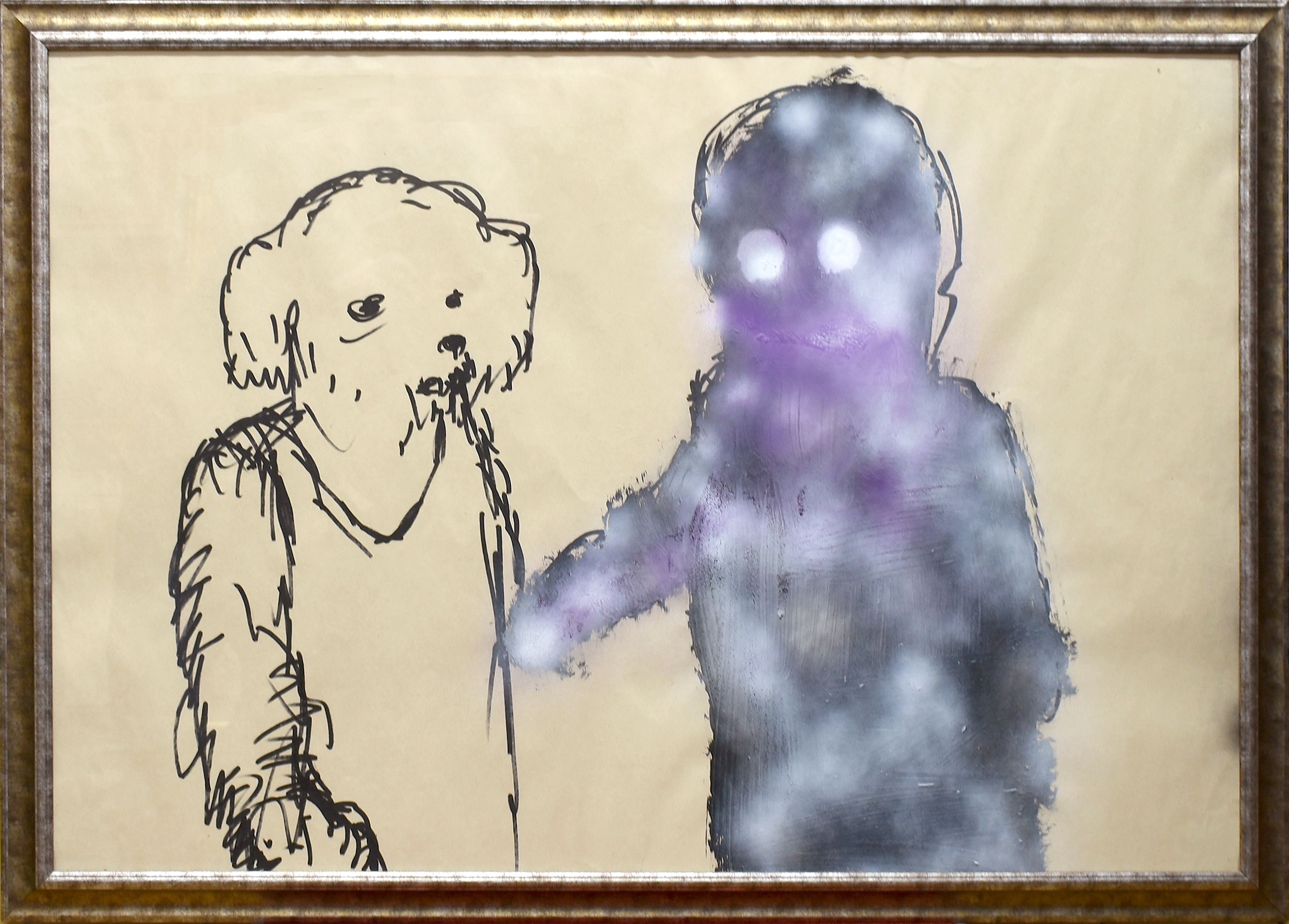 POPIS: Akryl + fixa na papíře, rok vzniku 2002, rozměr 70 x 100 cm, zaskleno, nesignováno. Dílo získáno přímo od autora.