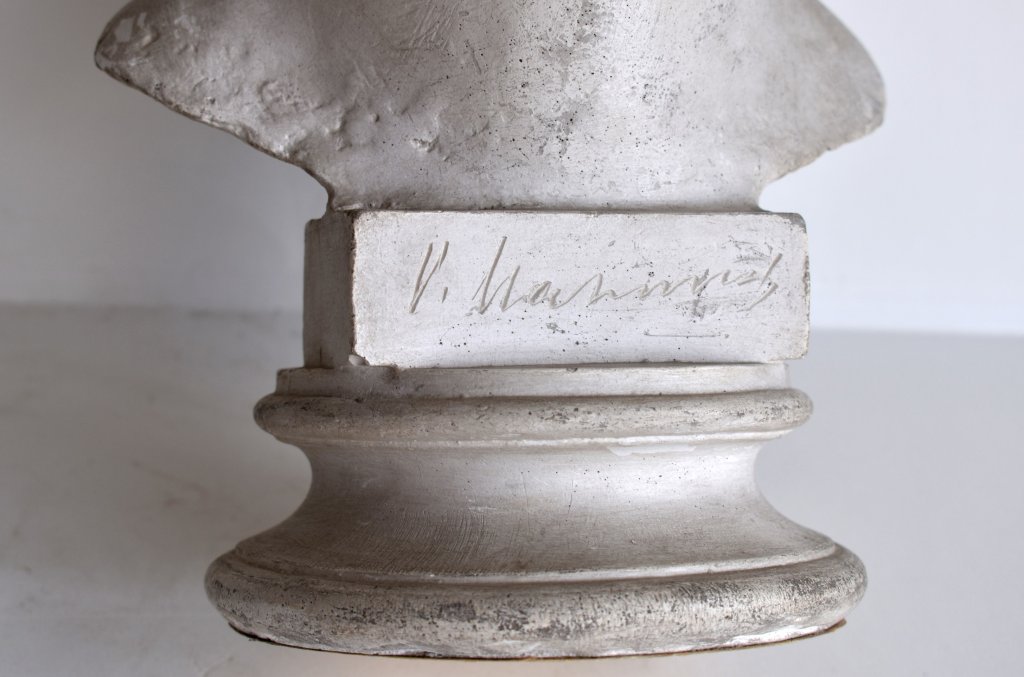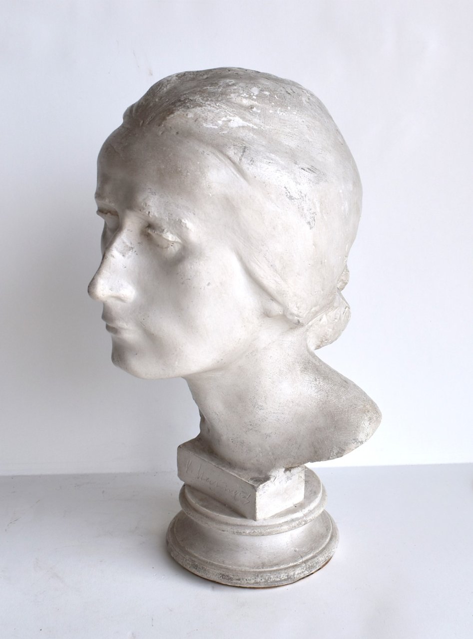 POPIS: Sádra, výška: 365 cm. Busta Boženy Němcové jíž autorem je Vincenc Makovský. Publikováno : Pestrý týden ze 17. 1. 1942, ROČ. XVII, ČÍS. 3, str. 11.