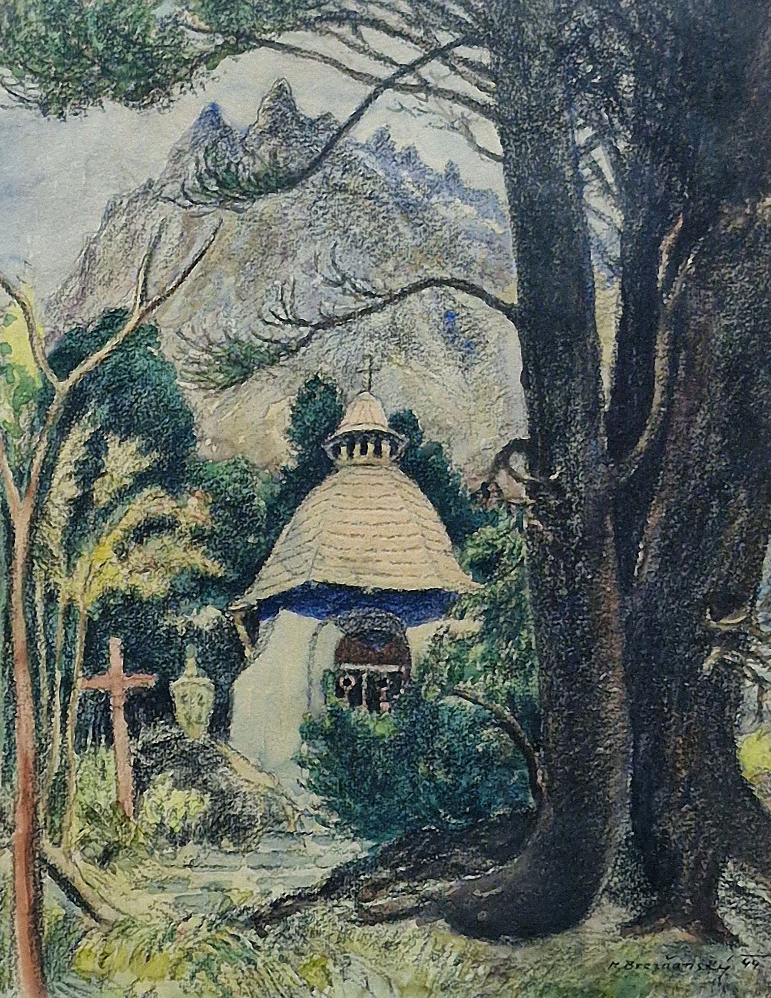 POPIS: Pastel na papíře, rozměr ve výřezu 38 x 29,5 cm, zaskleno