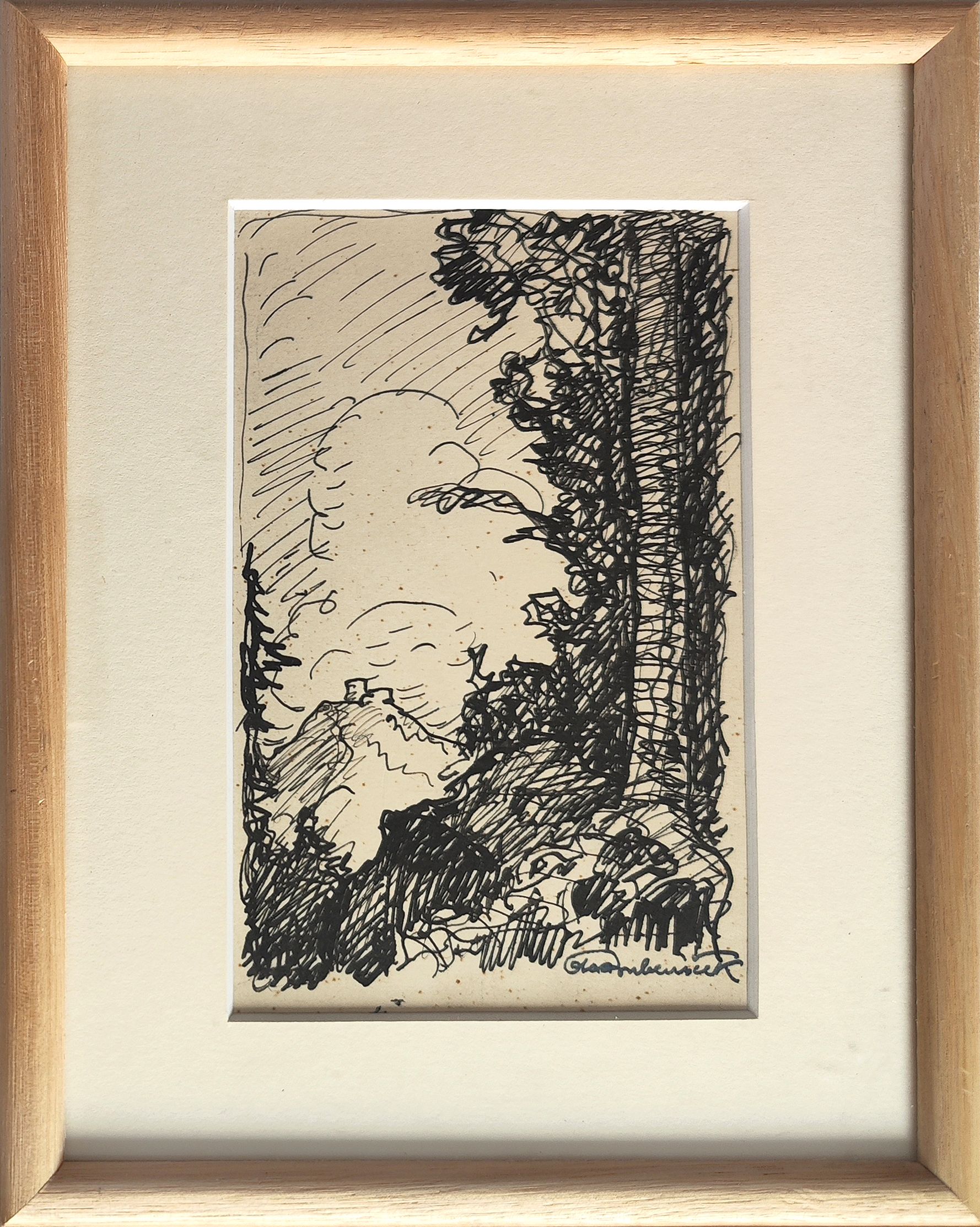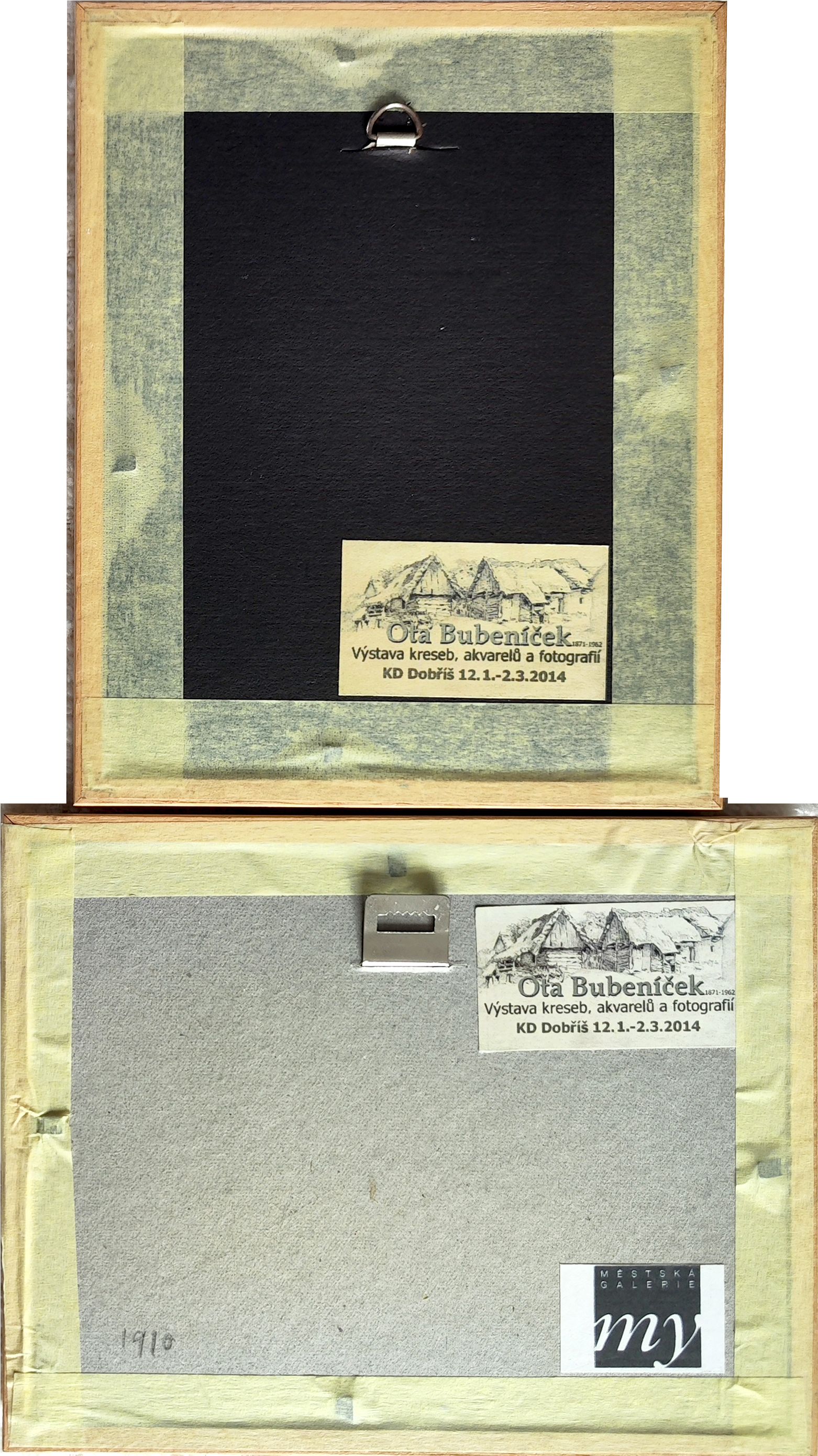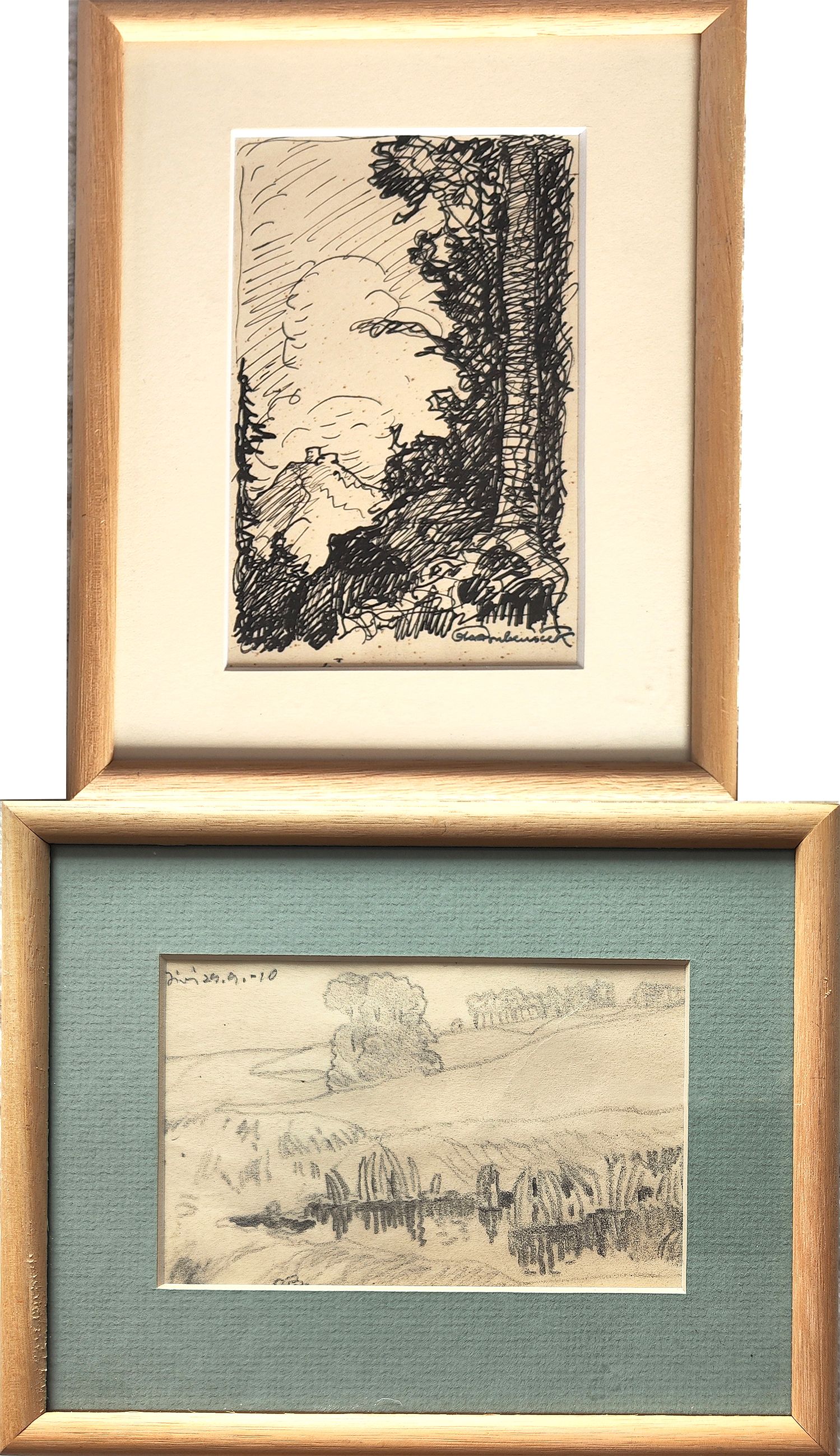POPIS: Kresby tužkou a tuší, rozměry ve výřezu pasparty: 8 x 12,5 / 13 x 8 cm