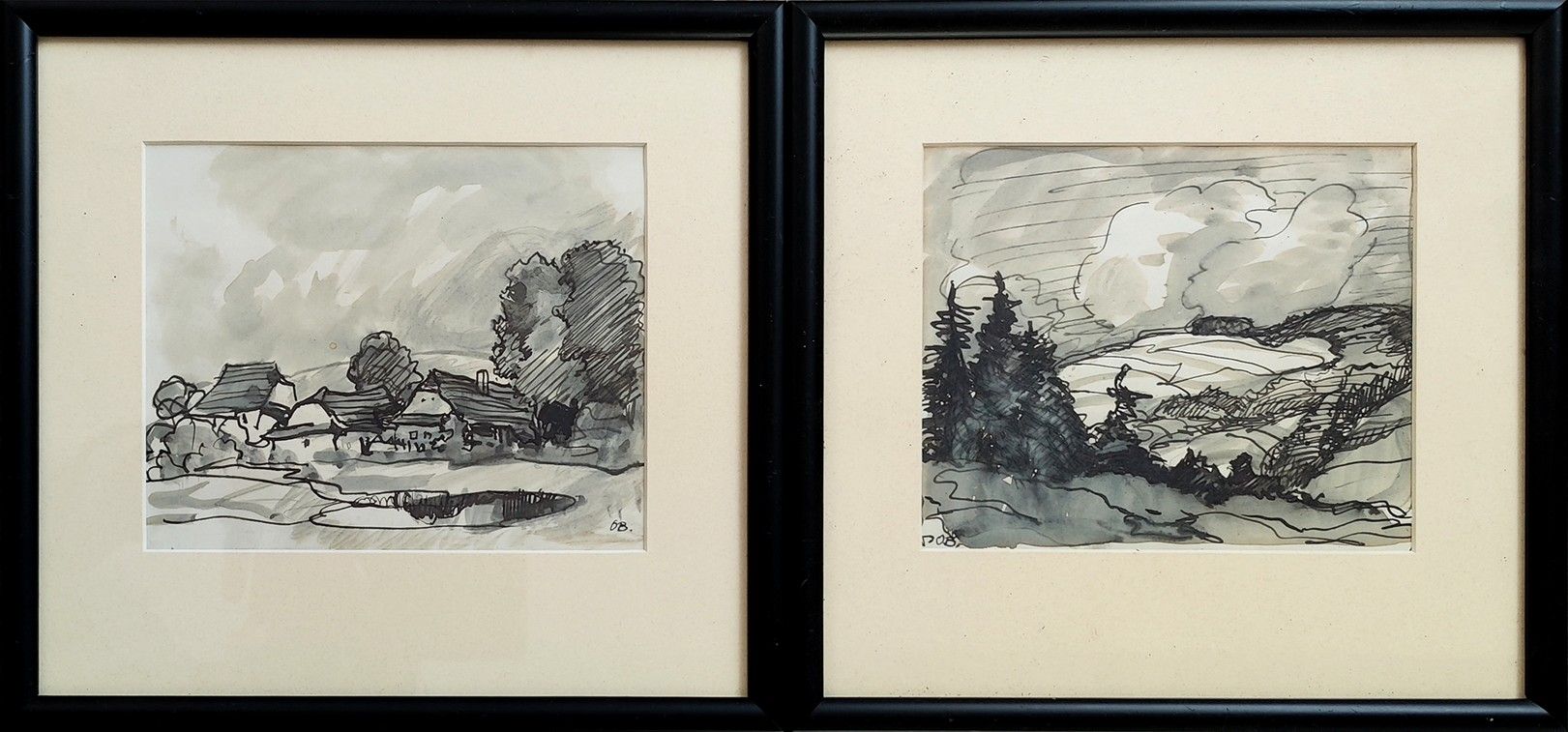 POPIS: Lavírované kresby tuší, rozměry va výřezu paspart: 14 x 17cm. Rámováno, zaskleno. Kresby byly vystaveny na výstavě v Dobříši - 2014