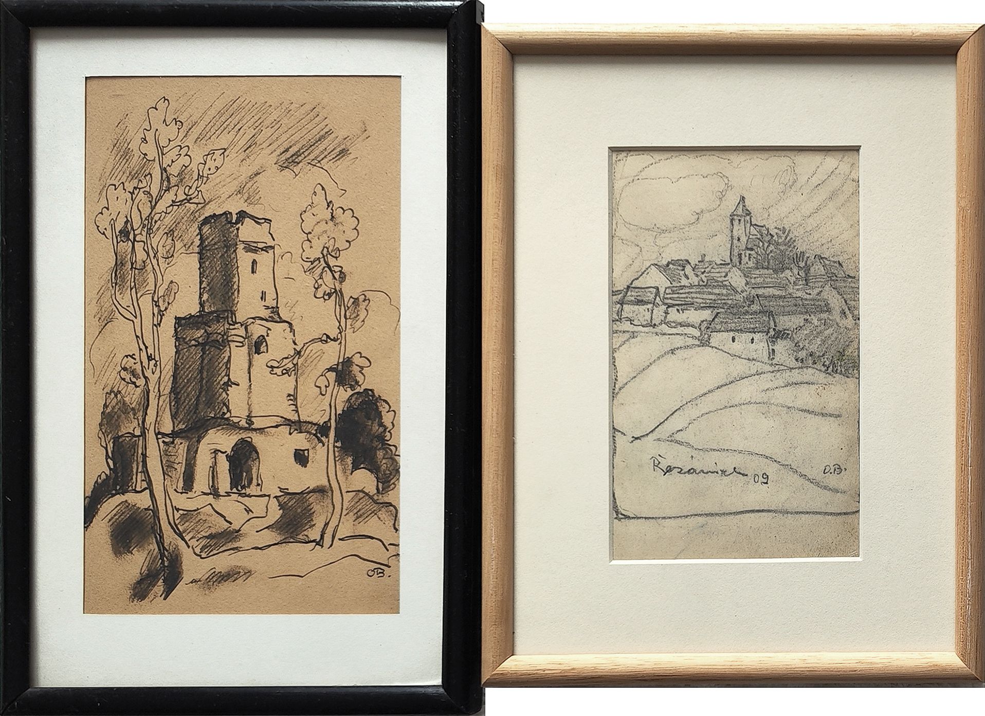 POPIS: Kresby tužkou a tuší, rozměry ve výřezu pasparty: 14,5 x 9 / 19 x 11,5 cm
