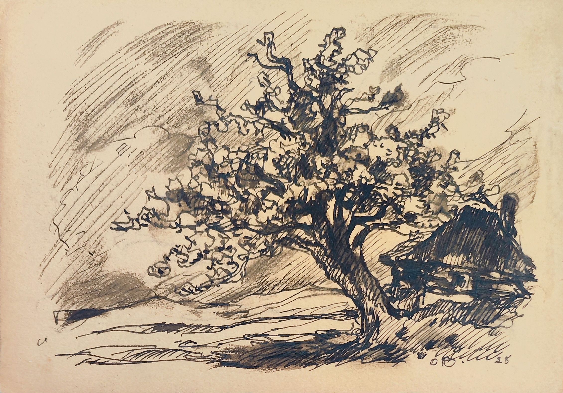 POPIS: Kresba tuší, rozměry listu: 14 x 20 cm. Rámováno, zaskleno. Kresba byla vystavena na výstavě v Dobříši - 2014