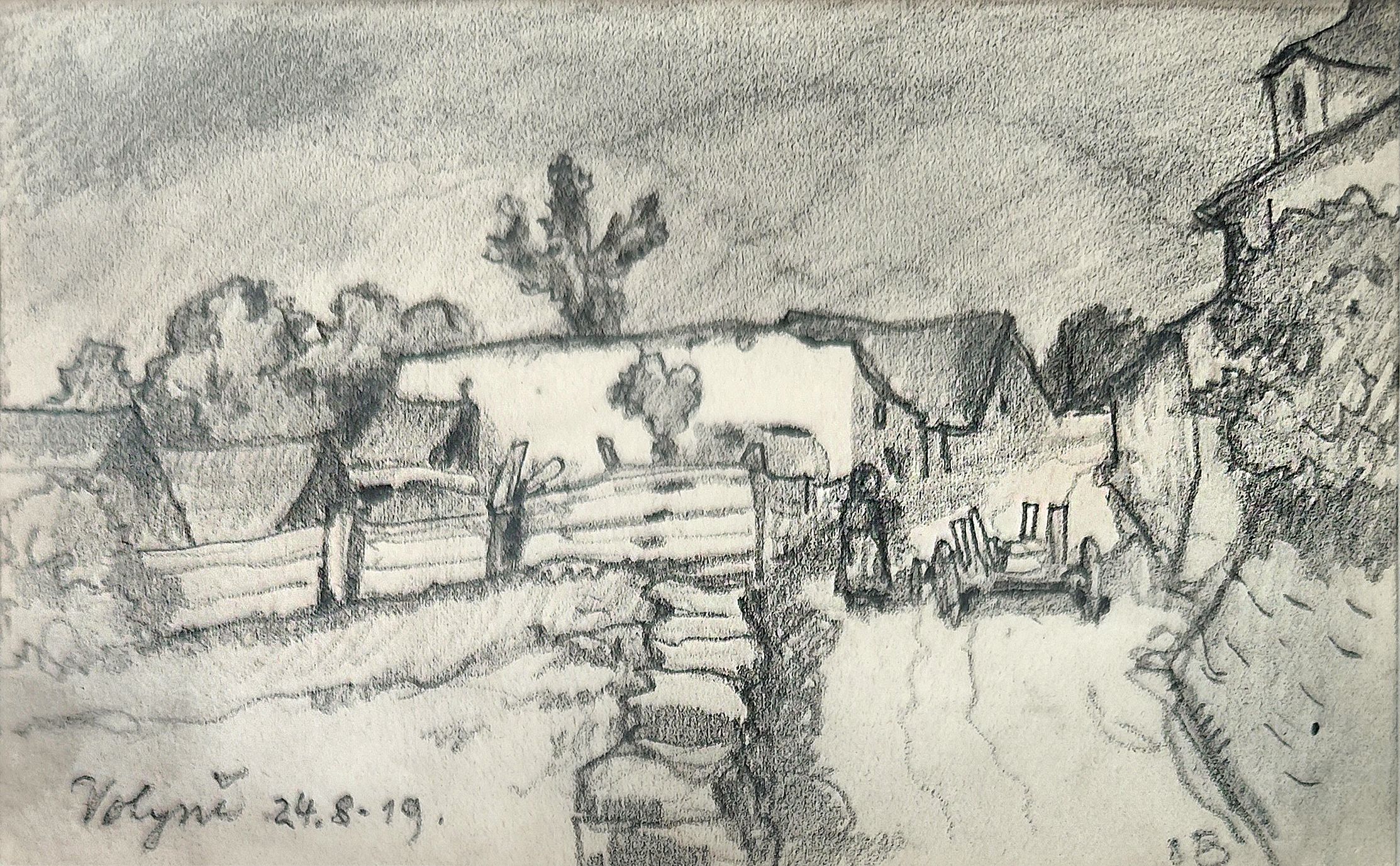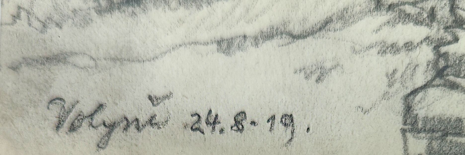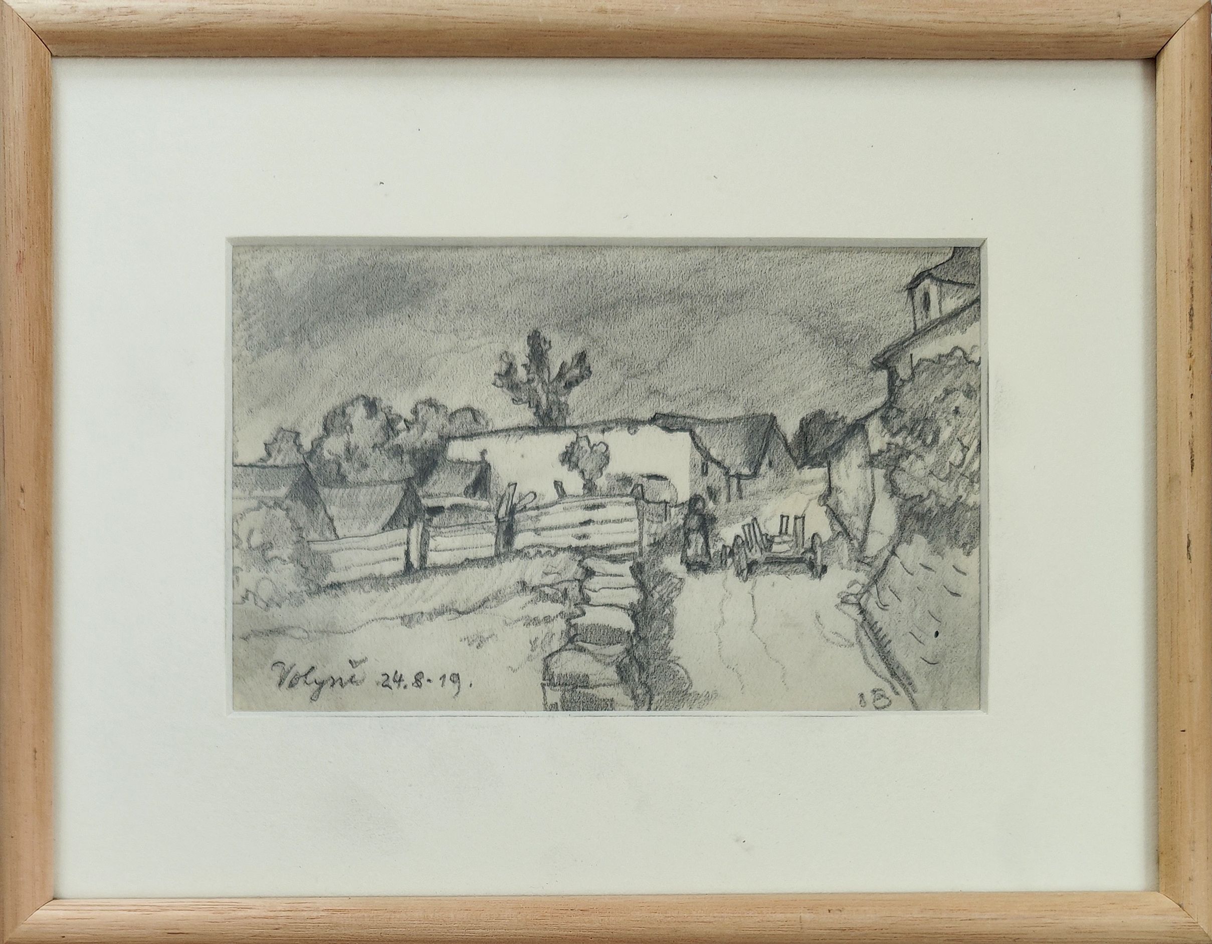 POPIS: Kresba tužkou, rozměry va výřezu pasparty: 9 x 14,5 cm. Rámováno, zaskleno. Kresba byla vystavena na výstavě v Dobříši - 2014.