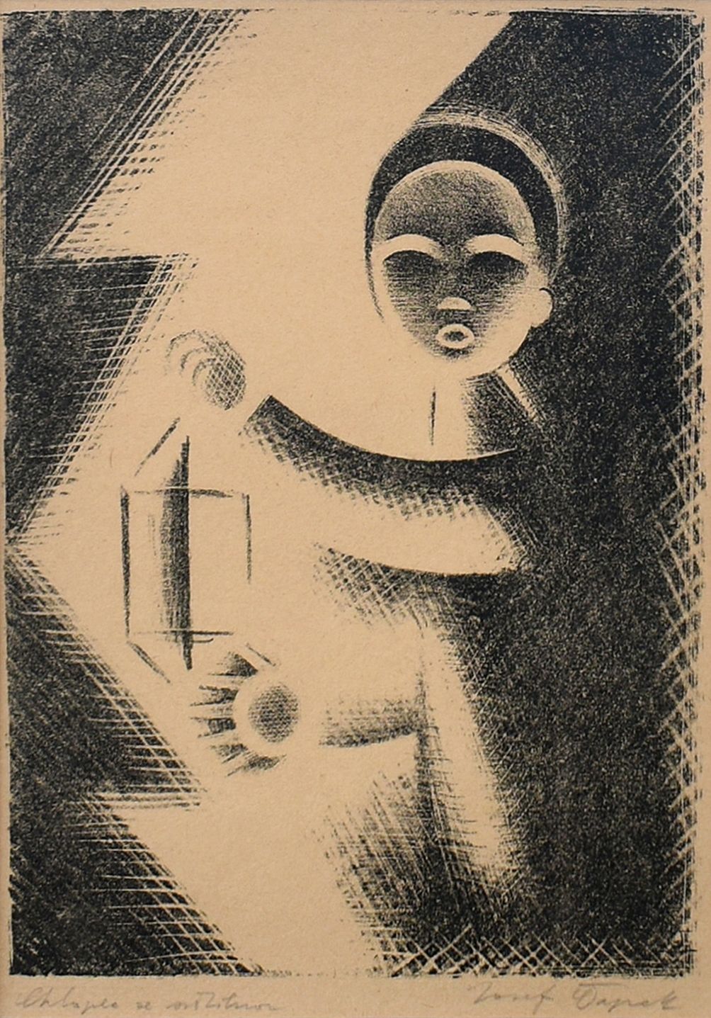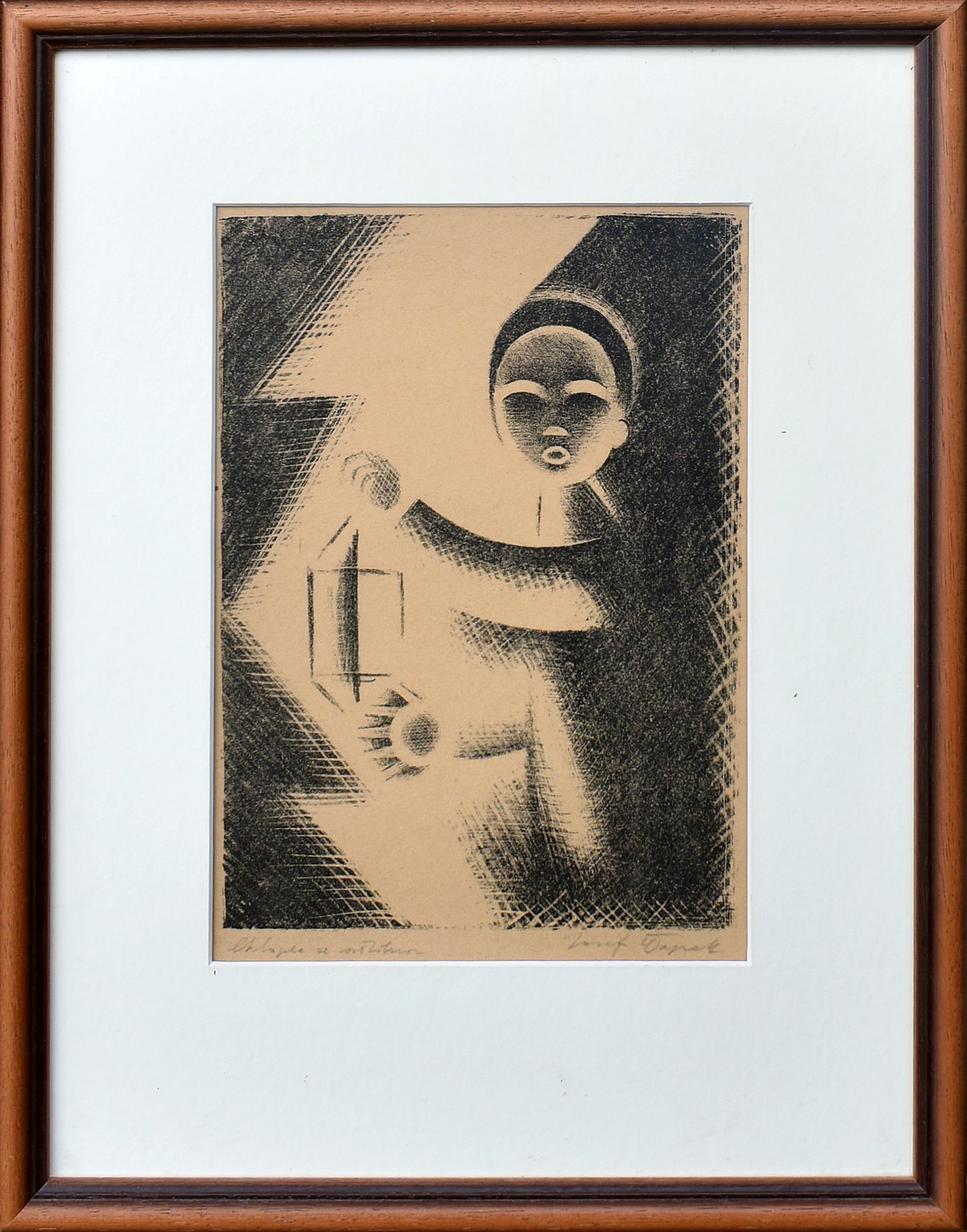 POPIS: Litografie, rozměr: 26 × 17,5 cm. List č. IX z alba deseti grafických listů Josefa Čapka, Praha, Veraikon 1918