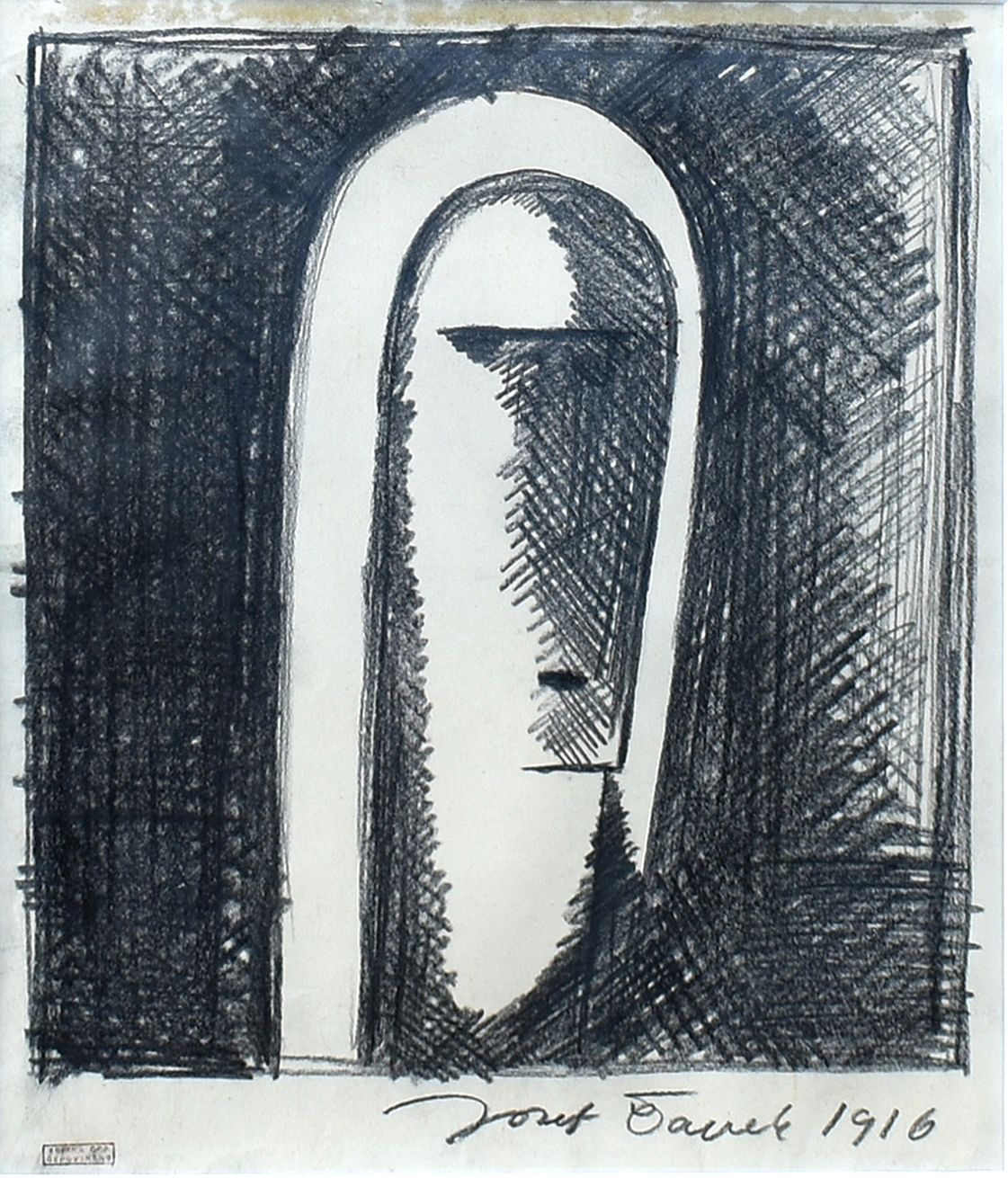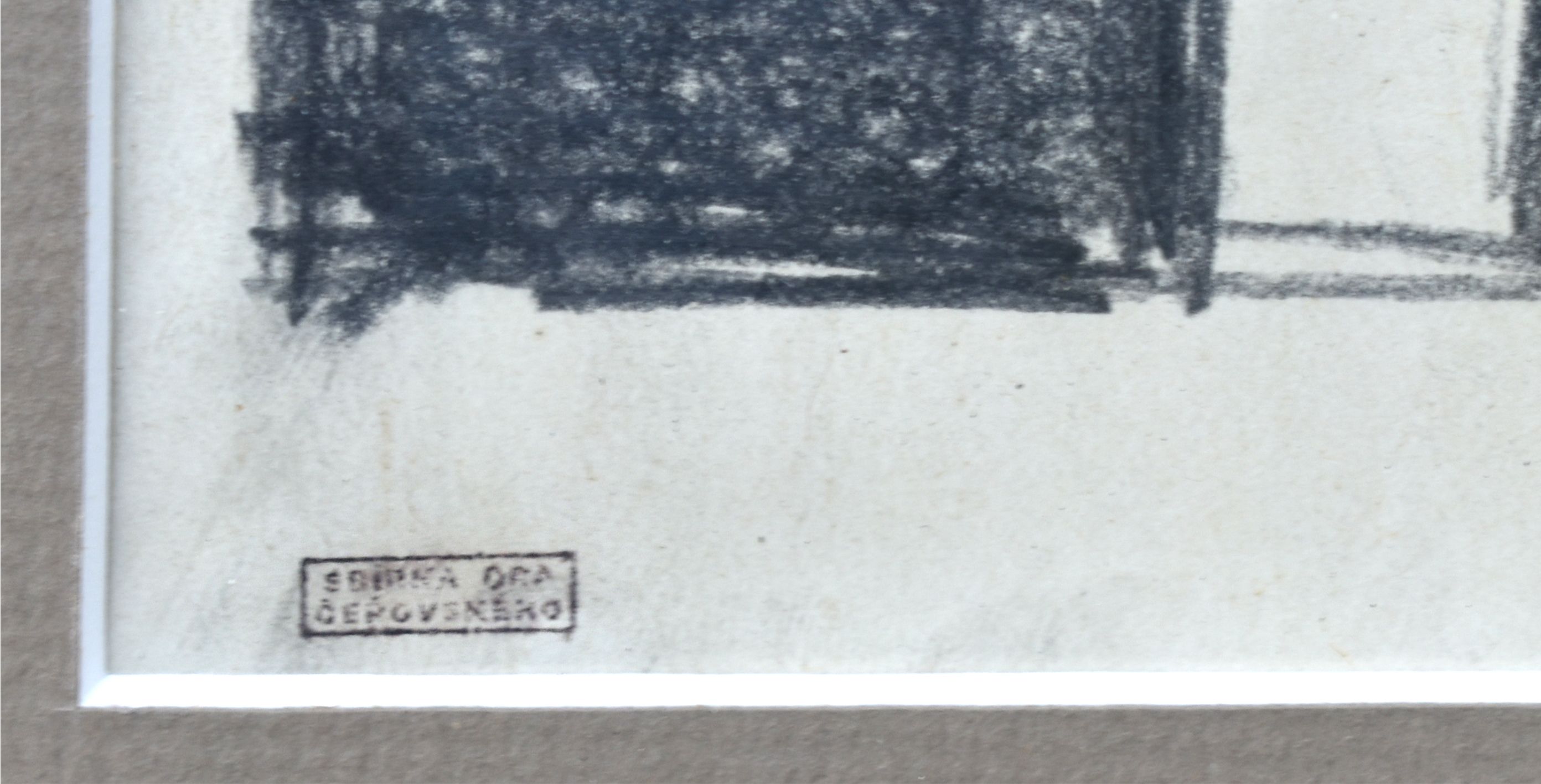 POPIS: Kresba tužkou, rozměry ve výřezu pasparty: 20,5 x 18 cm, zaskleno Razítko sbírky dr. Čeřovského