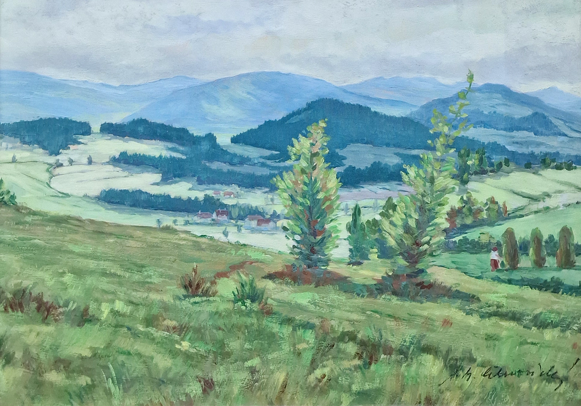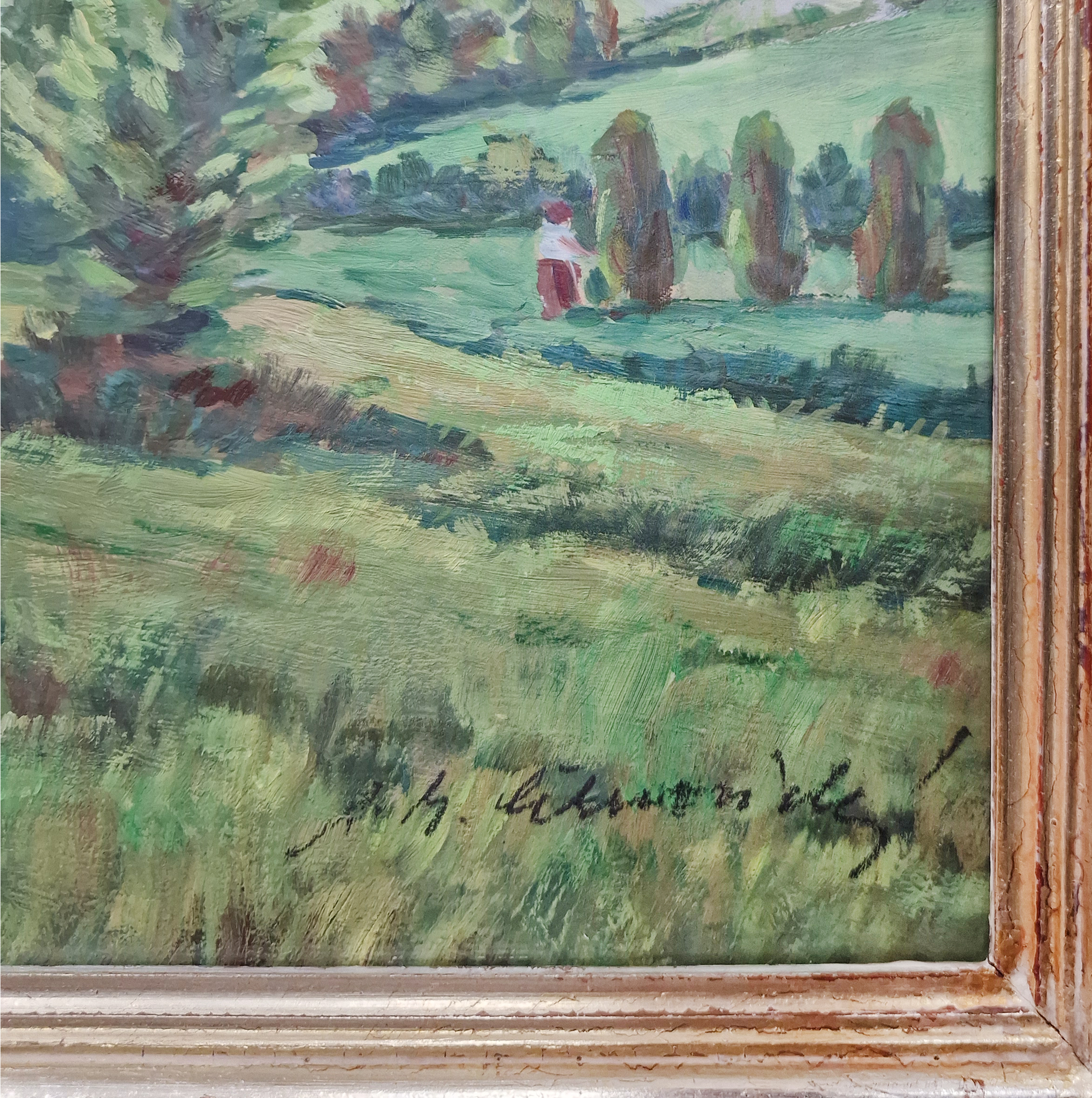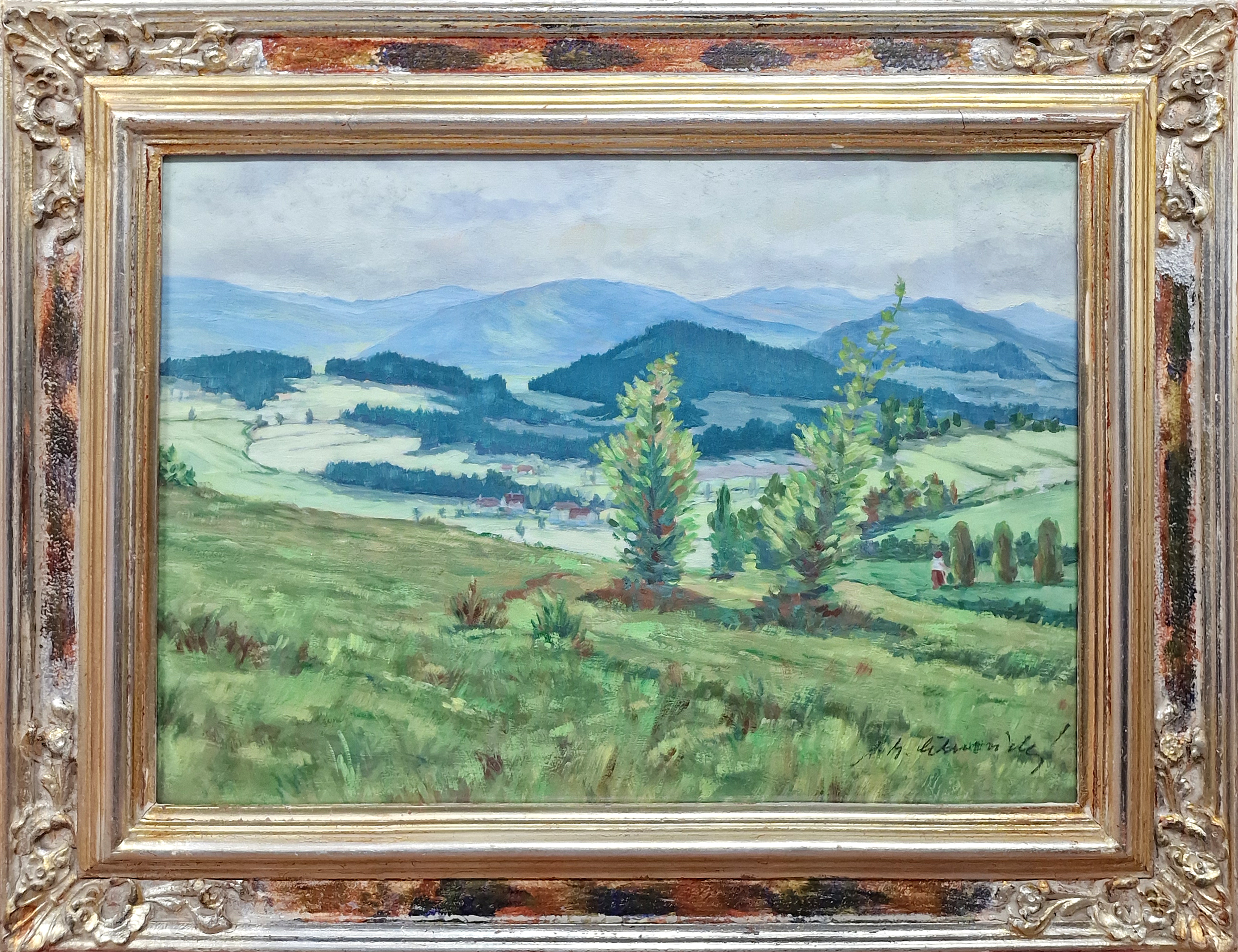 POPIS: Olej na lepence, rozměr 36 x 51 cm, zaskleno