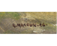 O AUTOROVI: Narodil se 18. 12. 1889 v Praze a zemřel 7. 10. 1934 Již v chlapeckém věku se projevilo jeho nadání, krátce se učil u Václava Jansy a s jeho doporučením roku 1907 u Al. Kalvody. V letech 1908-1909 u Ant. Slavíčka a 1909-0913 na pražské Akademii. Jeho hlavním působištěm byl Český ráj, Kameničky, Českomoravská vrchovina. Poslední dva roky žil ve Svobodných Hamrech, kde má postaven pomník. Byl impresionistou a oddaným následovníkem Ant. Slavíčka. Jeho dílo je velmi početné, ale nestejných kvalit. Maloval zejména podzimní a zimní melancholické krajiny. Zvláště se mu dařila malba stromů a kombinace zasněžených ploch se hrou oblaků, zvláště v době předjaří a tání. Macoun se stranil veřejnosti a nebyl členem uměleckých spolků a sdružení. Toto samotářství a život na odlehlém venkové zabránily včasnému ocenění jeho díla.Malířovým hlavním působištěm, kde čerpal témata pro svá díla, byl Český ráj, Kameničky a Českomoravská vrchovina. Byl malířem-krajinářem, impresionistou a oddaným následovníkem A. Slavíčka. V jeho tvorbě lze vysledovat i vlivy A. Kalvody, J. Ullmanna a F. Kavána. Ve svých vrcholných dílech, například Pohřeb v zimě (kolem 1918), Předjaří na vysočině (1920), Po bouři (1922), Chaloupky na Vysočině (1923), dokázal přenést spontánní atmosféru plenérových malířských záznamů na plátna velkých formátů, přičemž jeho výtvarně nadsazená barevná skladba v bouřkových mračnech v kombinaci se stromovým a blátivou půdou představuje mistrovské vyjádření české krajiny a její nálady. V řadě variant a rovněž ve velkých formátech ztvárnil pohedy na zříceninu hradu Trosky v působivém modravém oparu, a to zejména v zimním a podzimním období. Od raného mládí maloval převážně v menších formátech svá oblíbená zákoutí Prahy, zejména pak Karlov, Uhelný trh, Linhartský plácek, Kampu a pohledy přes malostranské střechy na Pražský hrad nebo Petřínskou rozhlednu. Ve své tvorbě převyšoval běžné epigony A. Slavíčka a dalších mařákovců, a to především citem pro barevnou skladbu české krajiny a zaujatým temperamentním přednesem. Výstavy (autorské) 1919 – Výstava krajin Gustava Macouna, Krasoumná jednota, Dům umělců, Rudolfinum 1922 – Gustav Macoun, Rubešova galerie, Praha 1926 – Gustav Macoun – krajiny ze Šumavy, Topičův salon, Praha 1930 – Gustav Macoun, Polička (větší počet obrazů) 1933 – Gustav Macoun, Hradec Králové, v budově ředitelství státních drah (soubor 32 děl) 1935 – Posmrtná výstava, Bečkova galerie, Praha (32 obrazů) 1937 – Gustav Macoun - soubor, Umělecký kabinet, Praha 3, Vítězná třída 10 2009 – Gustav Macoun, Městské muzeum a galerie Hlinsko 2018 – Balada o soumraku, Obrazárna Špejchar Želeč (40 obrazů) 2019 – Gustav Macoun (1889-1934), Městské muzeum a galerie Hlinsko