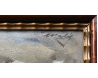 POPIS: Olej na lepence, rozměry: 25 x 35cm, zaskleno