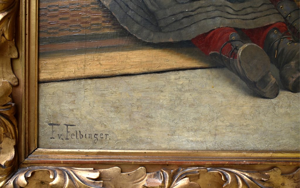 O AUTOROVI: Franz von Felbinger, od února 1870 Franz Rytíř z Felbingeru (8. července 1844, Hainburg an der Donau – 15. července 1906, Třebíč, Morava, dnes Česká republika) byl rakouský a moravský inženýr, průmyslník a malíř. Studoval malířství na Akademii výtvarných umění v Mnichově u Fritze von Uhde a také v Brně u Emila Pirchana. Tvořil především historické obrazy a portréty. Byl prvním z propagátoru plenérové malby a zpočátku tak neměl úspěch, později se stal úspěšným malířem a primárně malíři německé menšiny jej začali uznávat. Jeho práce visely v galerii v Brně a také ve Franzově Muzeu, tam se nacházel autoportrét. Jeho nejvýznamnějšími díly jsou "Die Armut" (chudoba) a "Ein Verlonerer". Felbinger byl také členem družstva mnichovských umělců. Byl majitelem brněnského hotelu Grand. V roce 1897 postavil konzervárnu a získal Zlatou medaili Brněnského obchodní spolku. Kromě toho, že vedl pole, pěstoval i zeleninu.[2] Felbinger zemřel na otravu krve a byl pohřben na hřbitově v Želešicích, kde stále existuje jeho náhrobek se strohým nápisem "Felbinger". Rytíř Řádu pruské koruny III. třídy Zlatý záslužný kříž Čestný občan Želešic Literatura Leopold Kriwanek, Theobald Suchánek, Moravská zahradnická asociace (Ed.): Historie Moravského ovoce, víno a zahradnické společnosti, 1816 do roku 1898. Festschrift u příležitosti padesáti let výročí vlády Císaře Františka Josefa I., Mahrischer ovoce, víno a zahradnictví club, v Brně, 1898 Felbinger, Franz (1844–1906), technik, Průmyslové a malíř. V: Rakouský biografický slovník 1815–1950 (ÖBL). Band 1, nakladatelství Verlag, Rakouská Akademie Věd, Vídeň 1957, str. 294. Federace BRUNA, domácí Sdružení Brno e. V. (Hrsg.): Brno hlavy – life obrázky významných žen a mužů z našeho rodného města, Stuttgart, Spolková Sdružení Bruna, 1988 Janás, Robert. Felbingerův Žebrák ze sbírek Moravské galerie. K počátkům moravského naturalismu. In: 57. Bulletin Moravské galerie v Brně, Brno 2001, S. 32 – 36. ISBN 80-7027-113-2. Ryšánek, Radek. Franz Ritter von Felbinger. Život a dílo brněnského naturalistického malíře. Bakalářská práce, Masarykova univerzita, 2002. Erfinder und Künstler aus Brünn, Jg. 58/7–8, červenec/srpen 2006 (PDF, 6,4 MB), p. 204–205 Franz Ritter von Felbinger[nedostupný zdroj], německá společnost pro historii pošty a telekomunikací, 2006 Ryšánek, Radek. Franz Ritter von Felbinger. Brněnský naturalistický malíř [online]. Brno: Diplomová práce, Masarykova univerzita, 2007 [cit. 2021-03-20]. Dostupné online. Ryšánek, Radek. Němečtí malíři v Brně (seriál článků) - Franz von Felbinger ( [online]. 2011 [cit. 2021-03-20]. Dostupné online. Reference Biografický slovník českých zemí [online]. Historický ústav AV ČR [cit. 2021-03-20]. Dostupné online. Franz von Felbinger v Encyklopedii dějin města Brna Franz von Felbinger ve sbírce Moravské galerie Brno