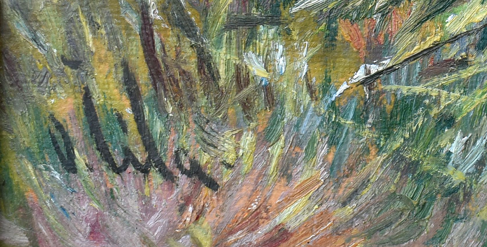 POPIS: Olej na lepence, rozměry: 35 x 50 cm, zaskleno