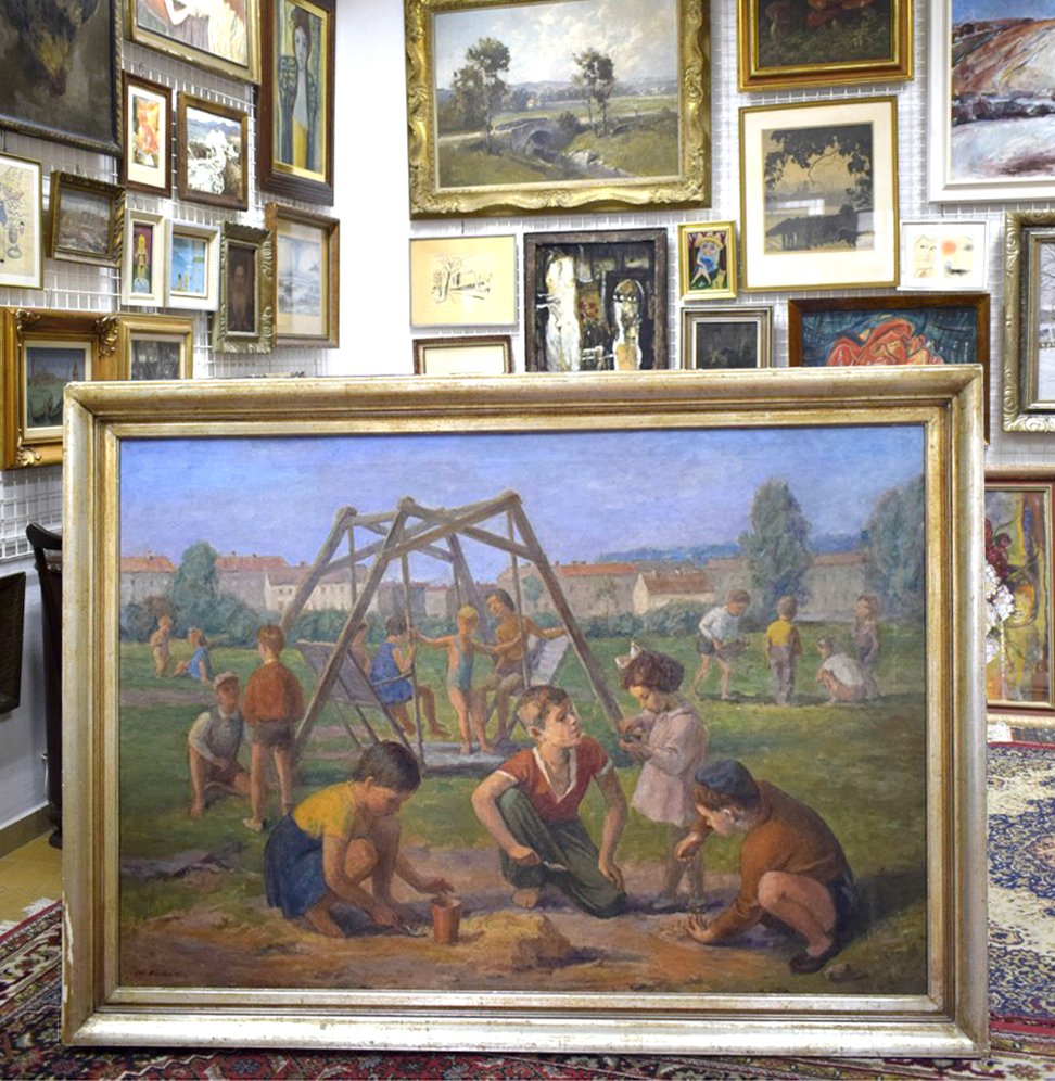 POPIS: Olej na plátně, rozměr 100 x 150 cm, rozměr včetně rámu 121 x 169 cm, mírná trhlina v plátně