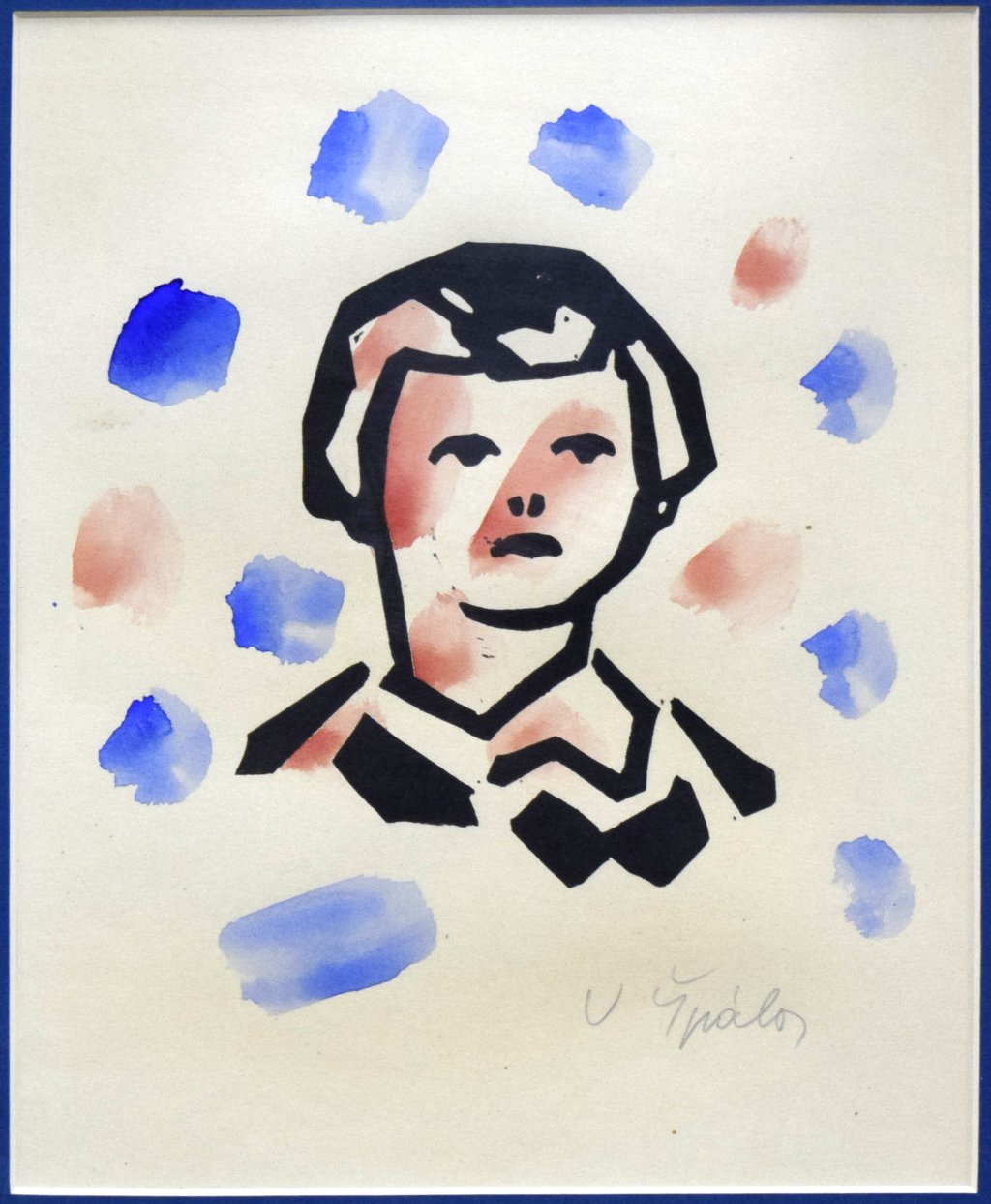 POPIS: Linoryt + akvarel, rozměr ve výřezu 27 x 22 cm, zaskleno