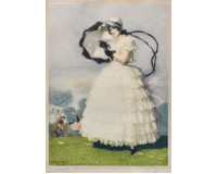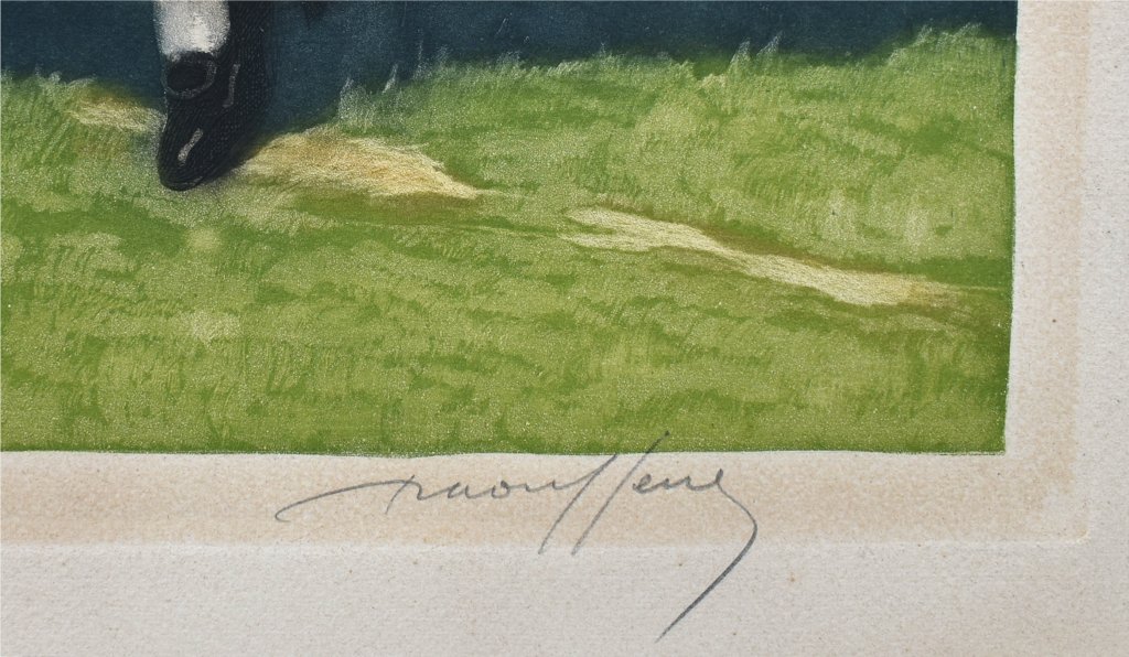 POPIS: Barevný lept .Signováno tužkou vlevo dole - 1923, zaskleno ,rozměry tisku: 57 cm, šířka: 42,5 cm, poškozený rám