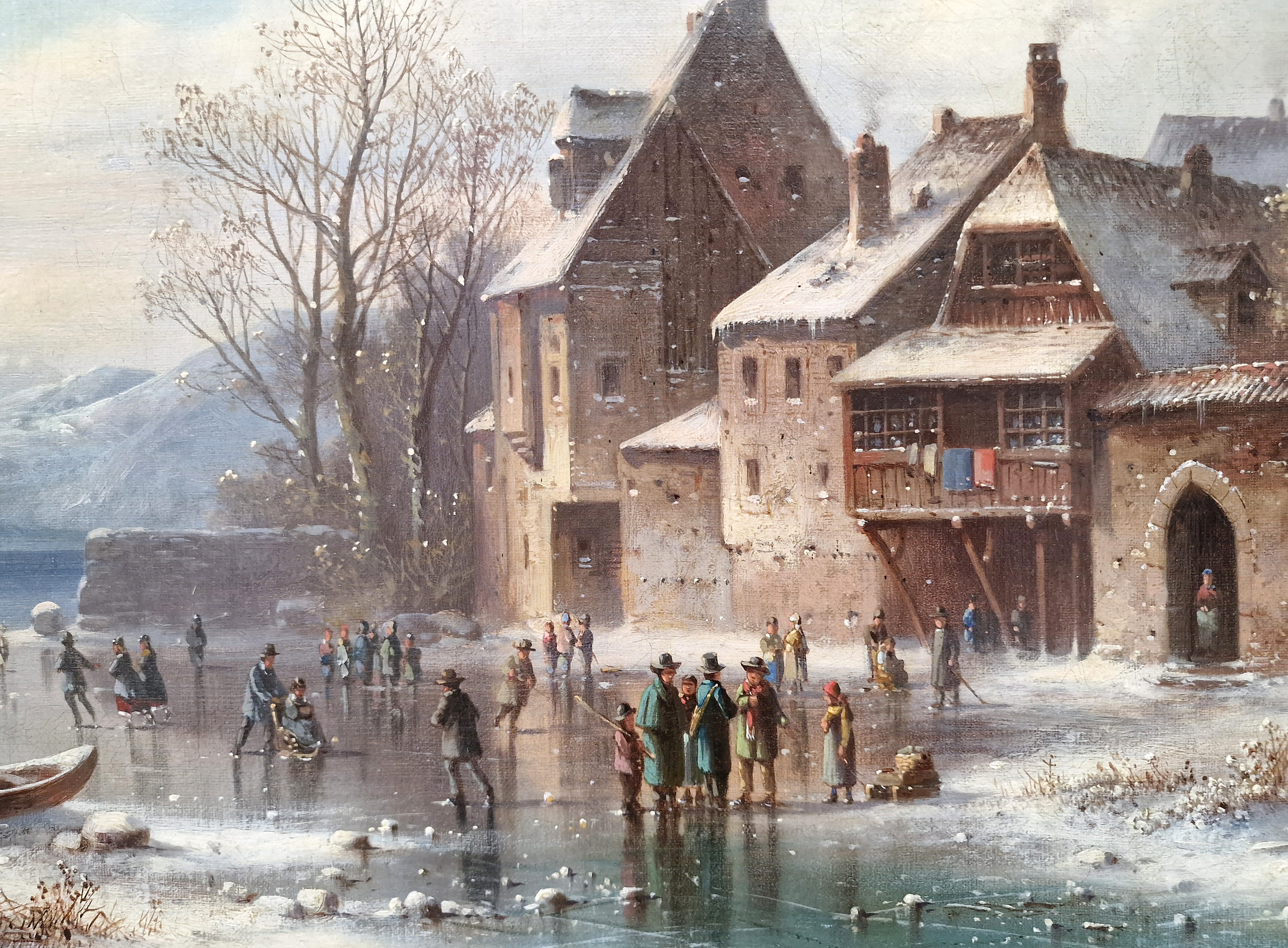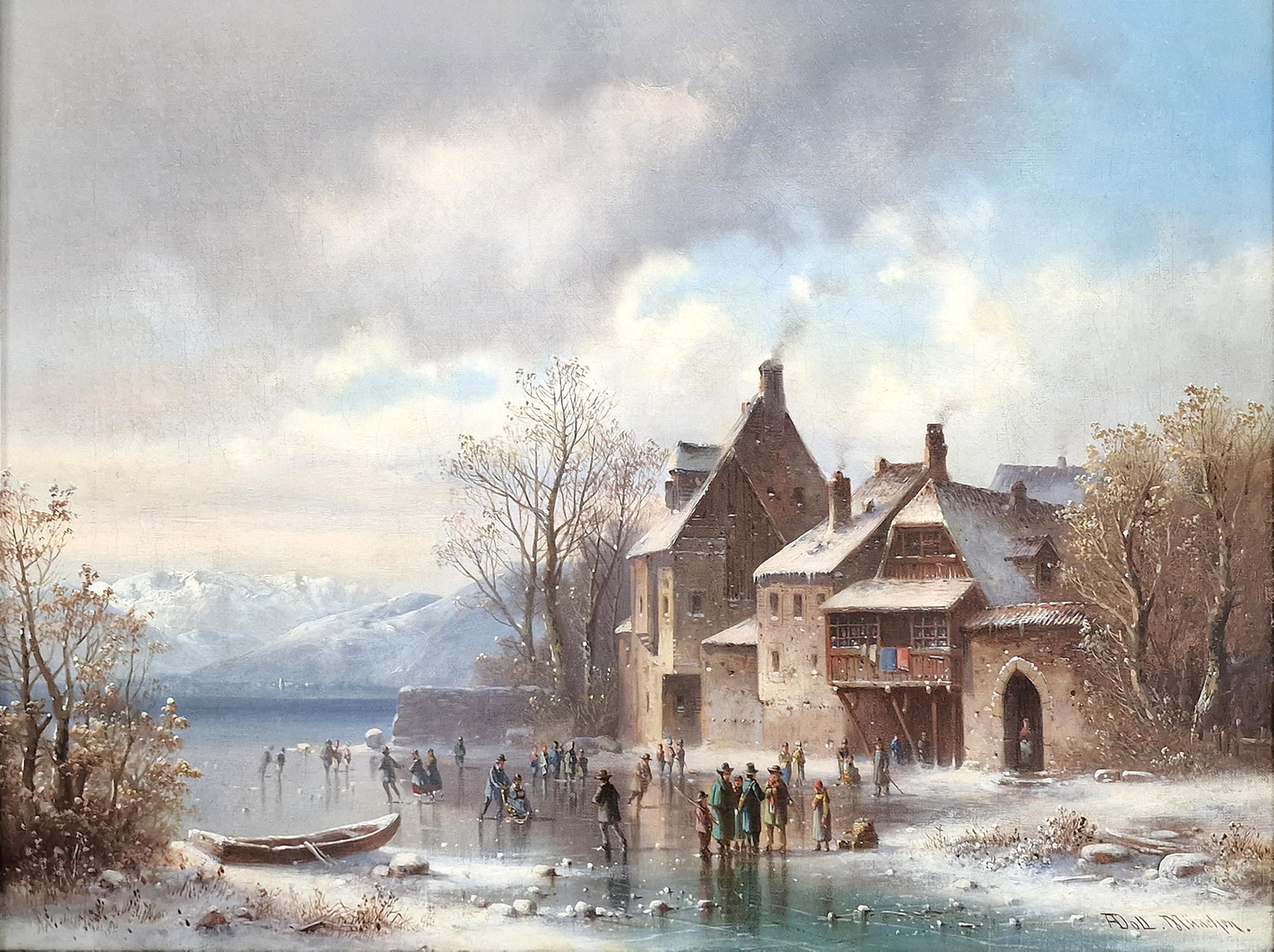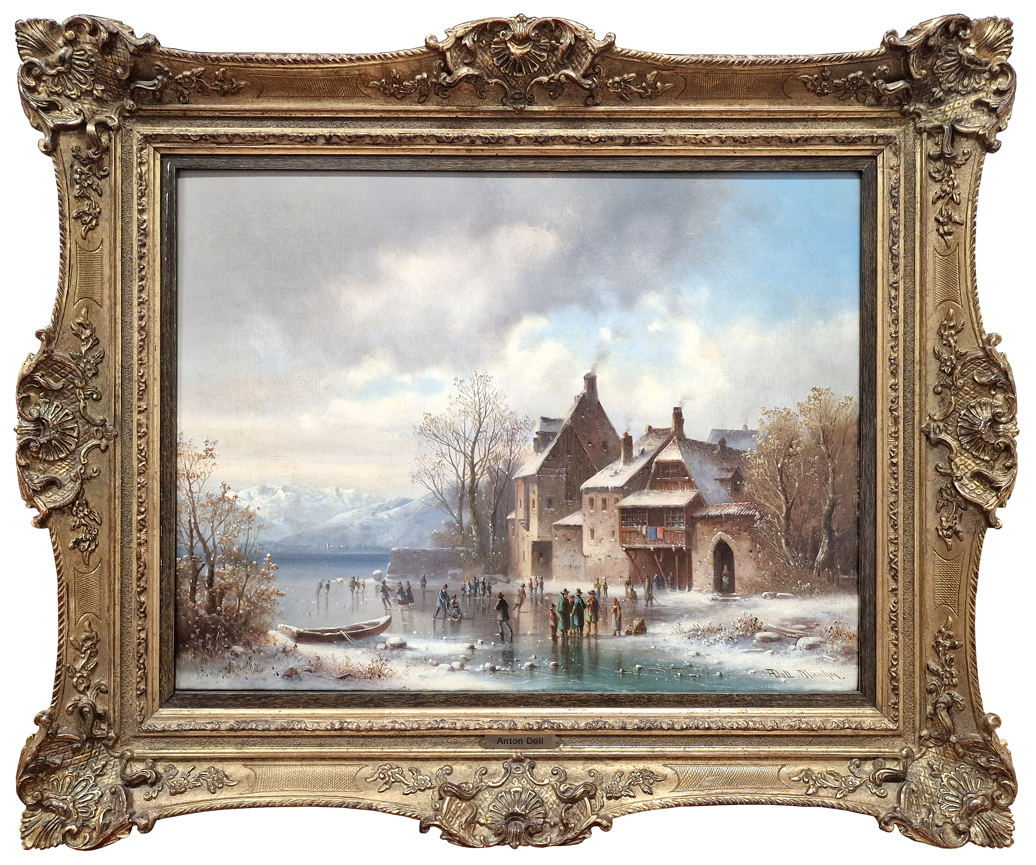 O AUTOROVI: 1826 - 1887 byl německý malíř 19. století, představitel realistické a žánrové malby. Specializoval se především na interiéry kostelů, klášterů a historických staveb, které zobrazoval s mimořádnou architektonickou přesností, smyslem pro detail a práci se světlem. Jeho obrazy často zachycují klidnou, kontemplativní atmosféru sakrálních prostor, někdy doplněnou drobnými figurálními scénami. Doll navazoval na tradici nizozemské a německé interiérové malby a byl ceněn zejména pro precizní perspektivu a realistické ztvárnění prostoru. Díla Antona Dolla jsou dnes zastoupena v soukromých sbírkách i muzeích a objevují se na evropských aukcích, kde jsou vyhledávána milovníky historické architektury a realistické malby 19. století.