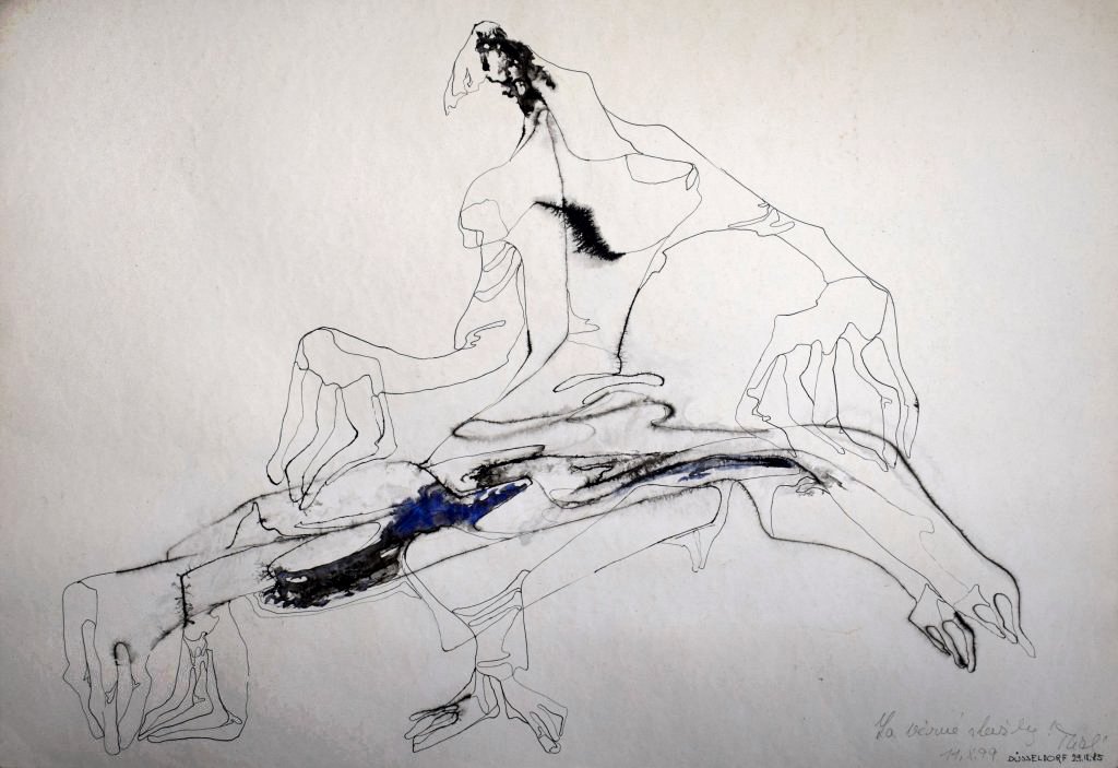 POPIS: Velkoformátová perokresba + akvarel, rozměr listu 45,5 x 65,5 cm, volný list