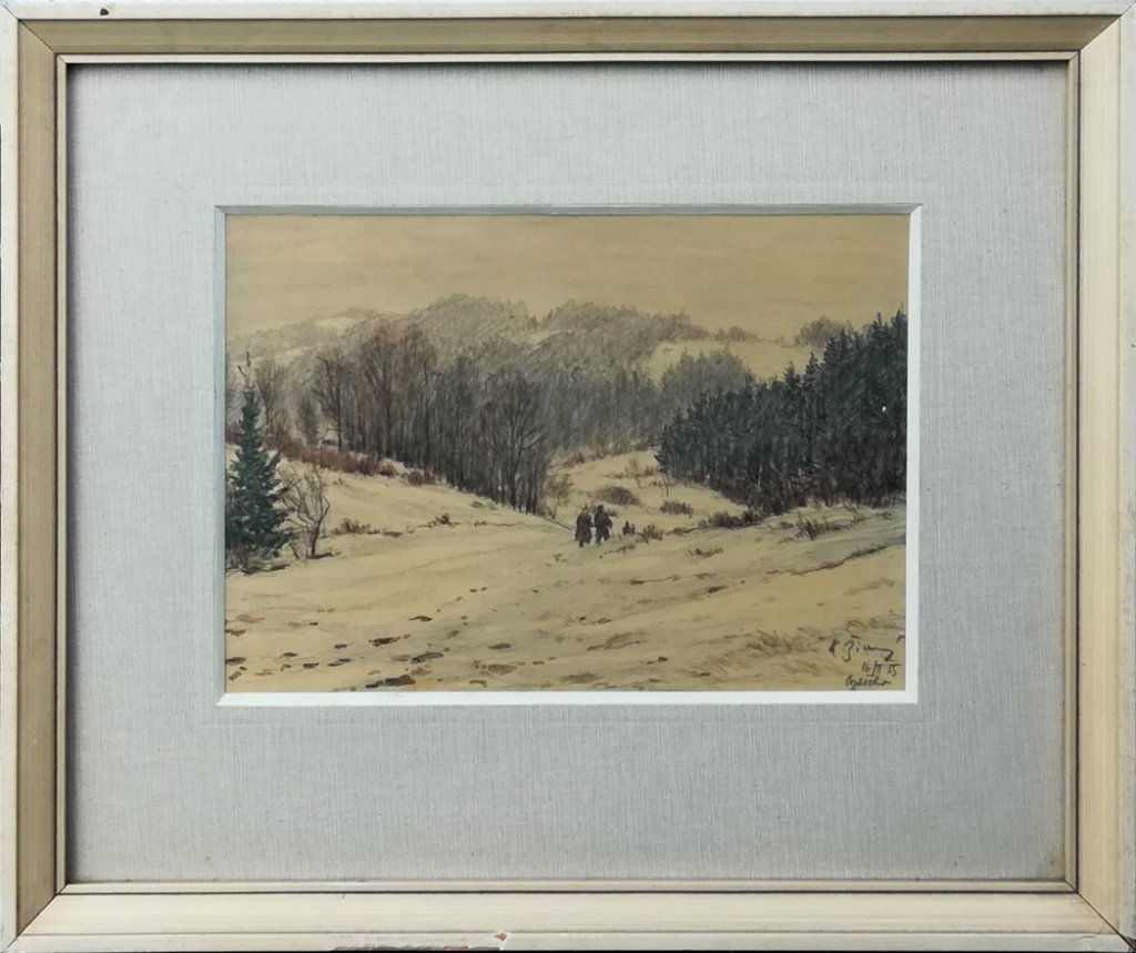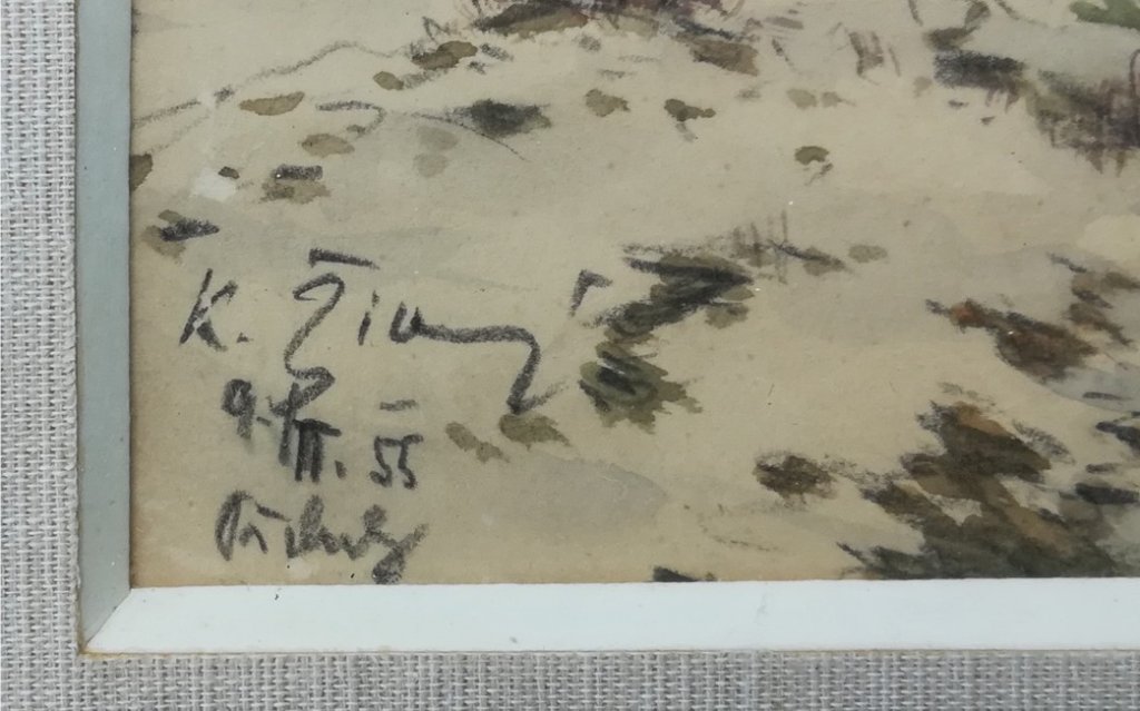POPIS: Akvarel, kresby,rozměry ve výřezu pasparty : 22 x 32. Celkové rozměry včetně rámu 43 x 51 cm