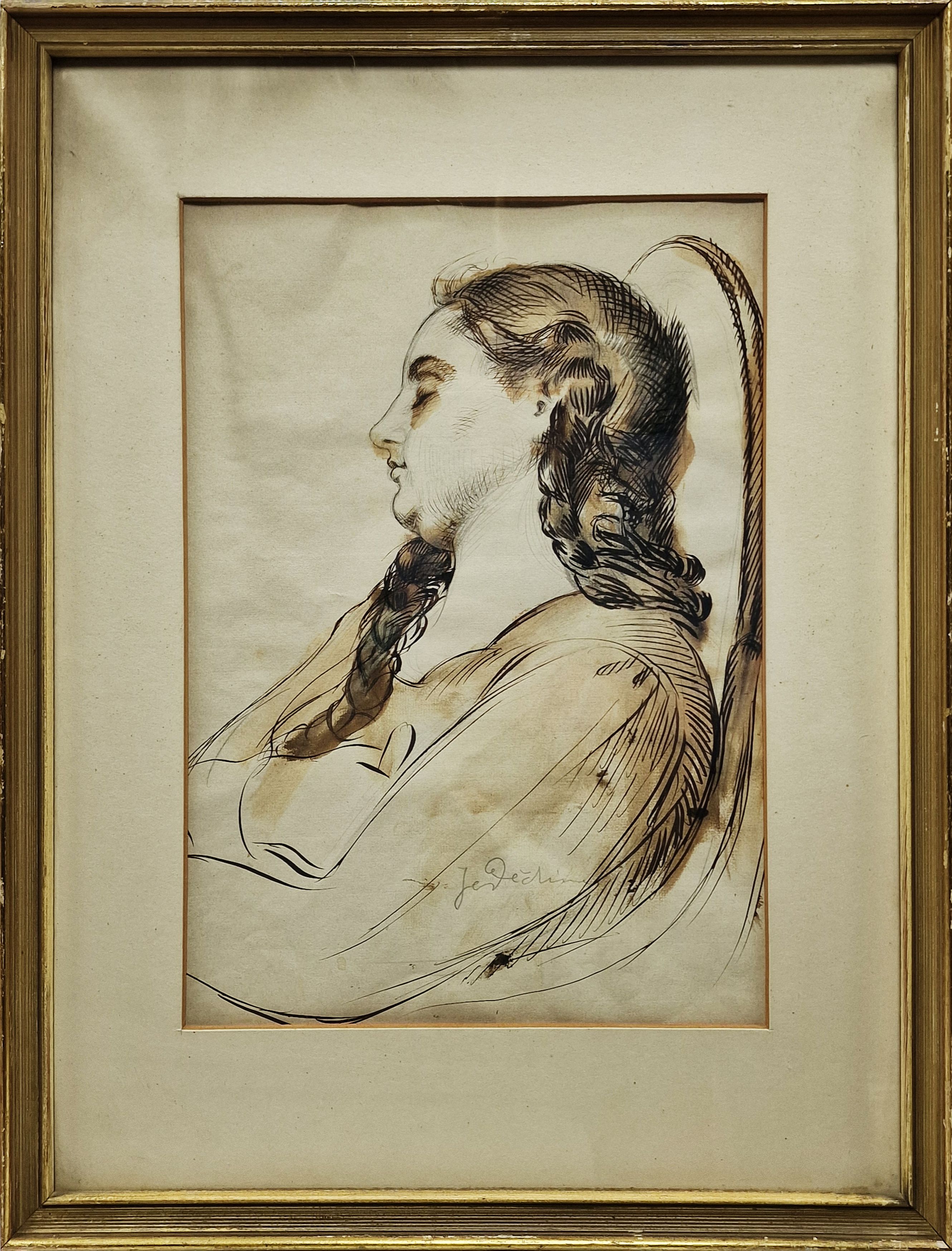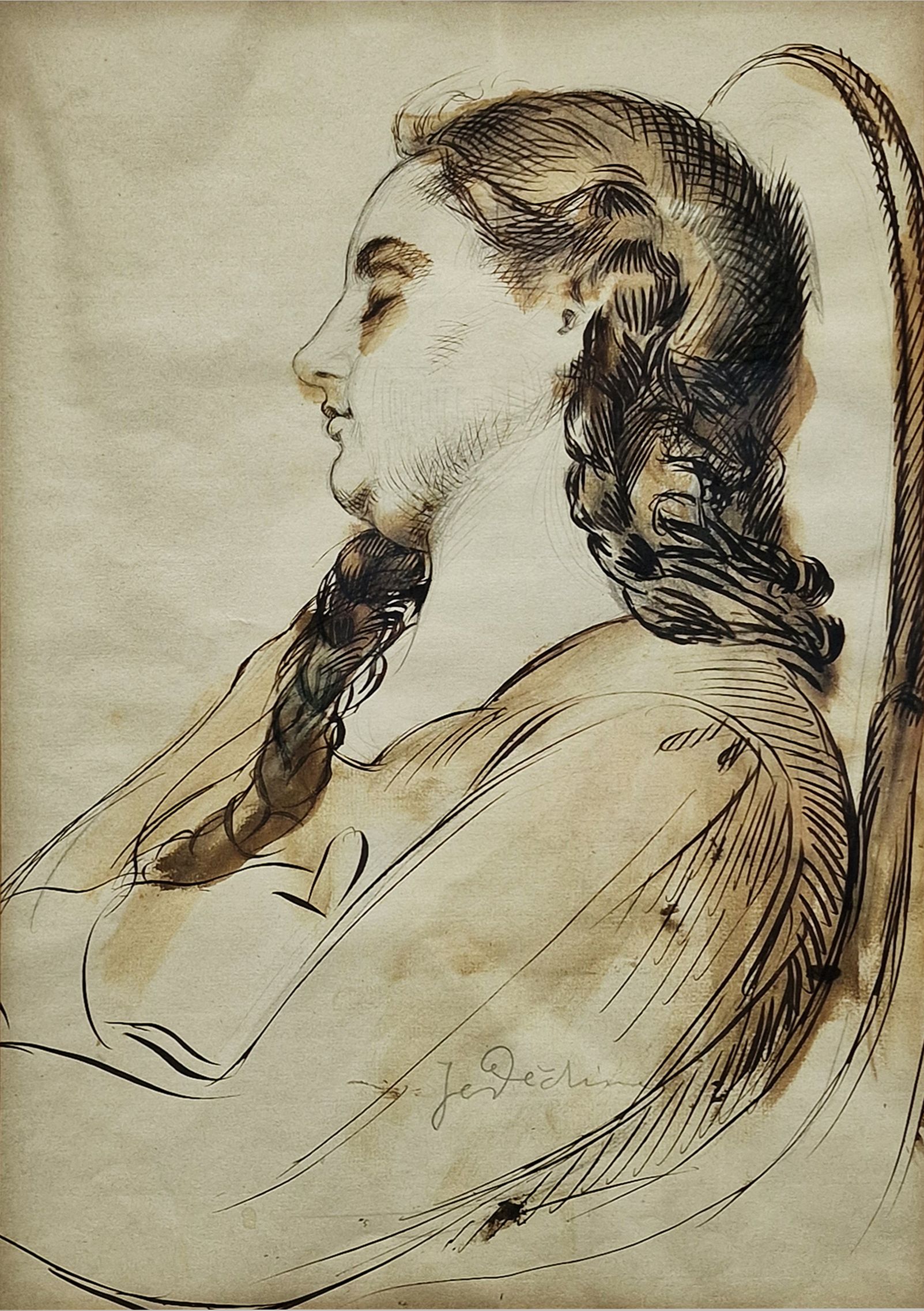 1X Lavírovaná tuš, rozměr ve výřezu 37,5 x 27 cm, zaskleno