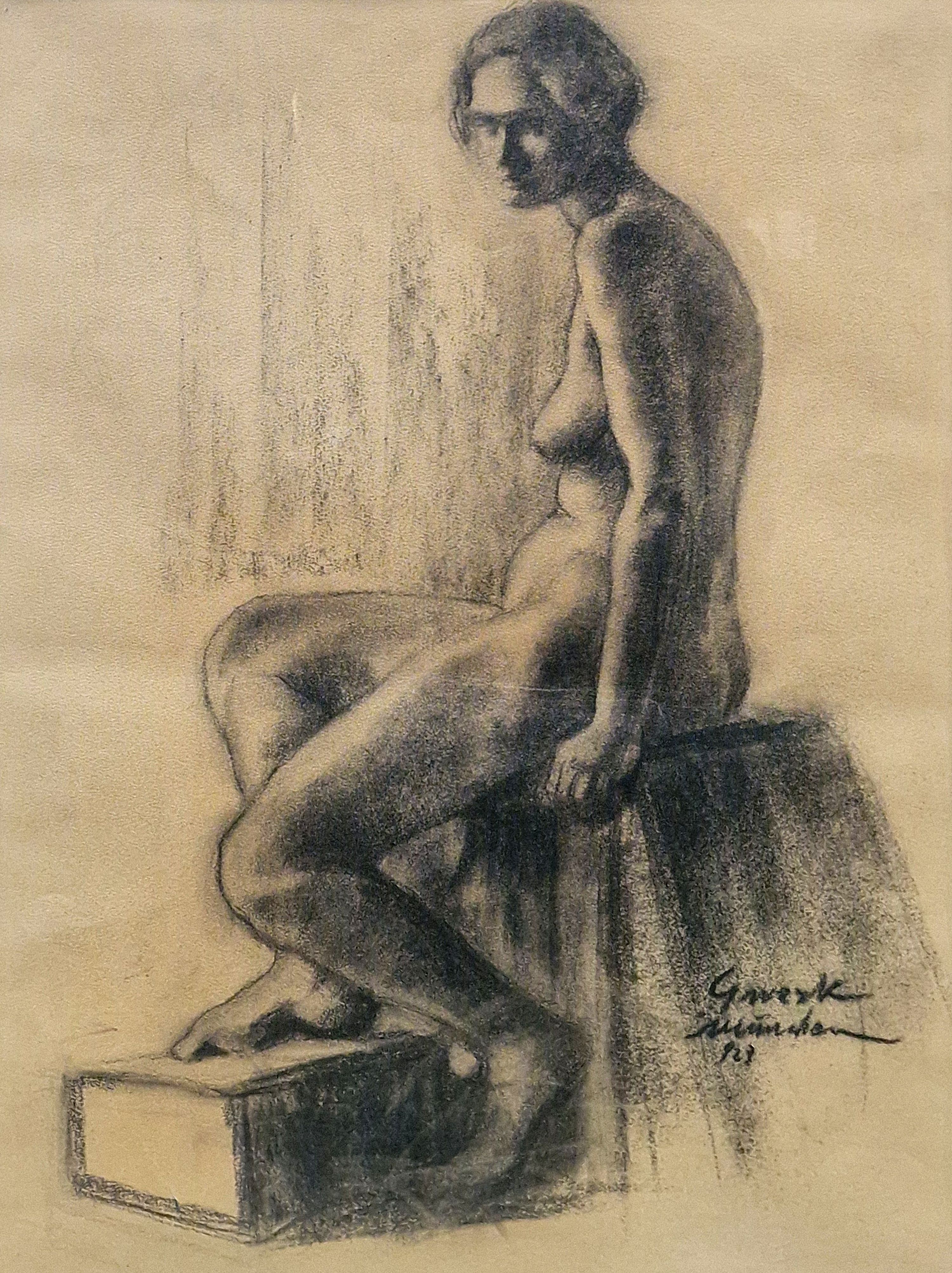 POPIS: Kresba pastelem, rozměr ve výřezu 56 x 42 cm, zaskleno