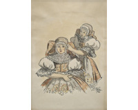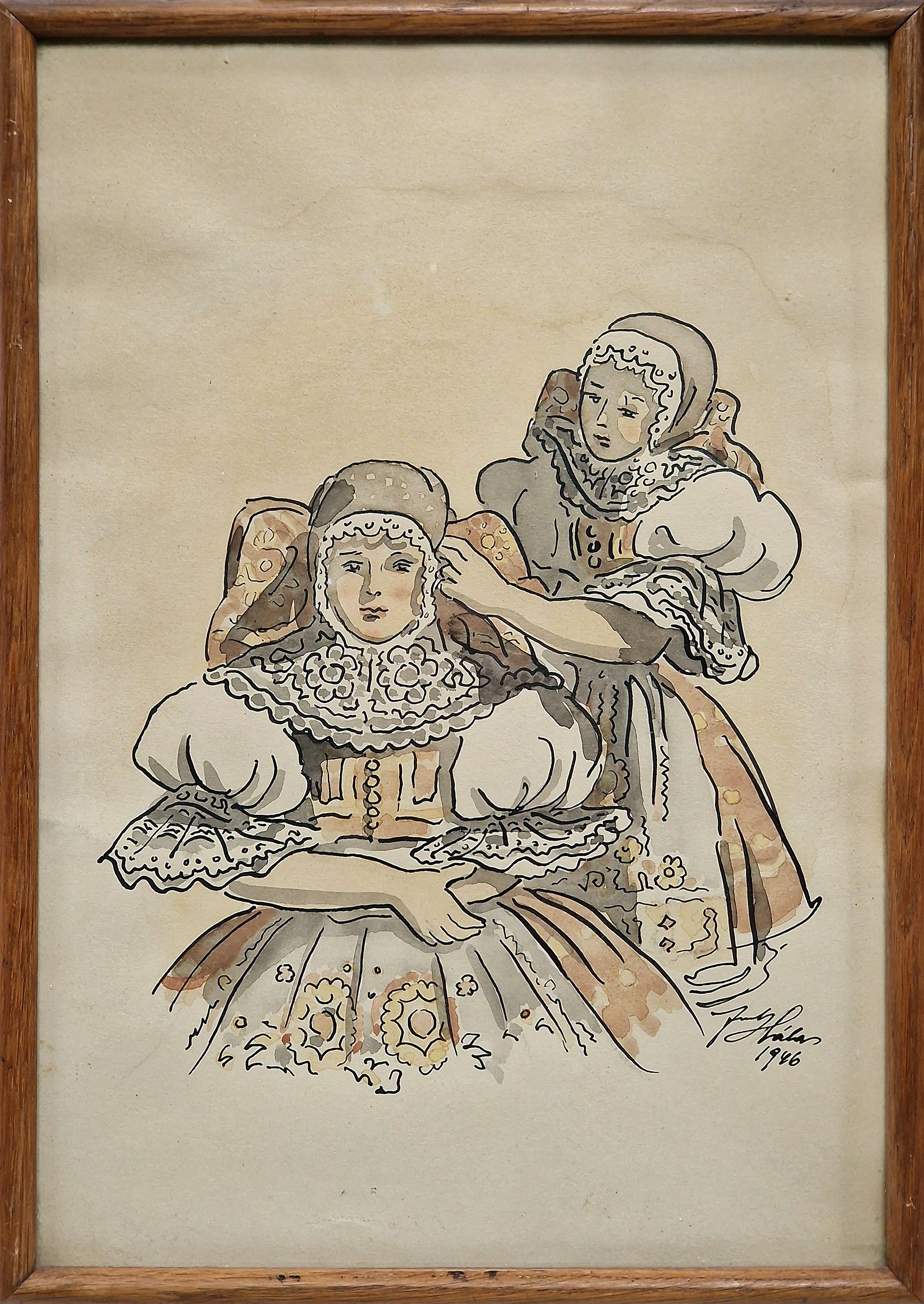 POPIS: Tuš + akvarel, rozměr 31 x 21,5 cm, zaskleno