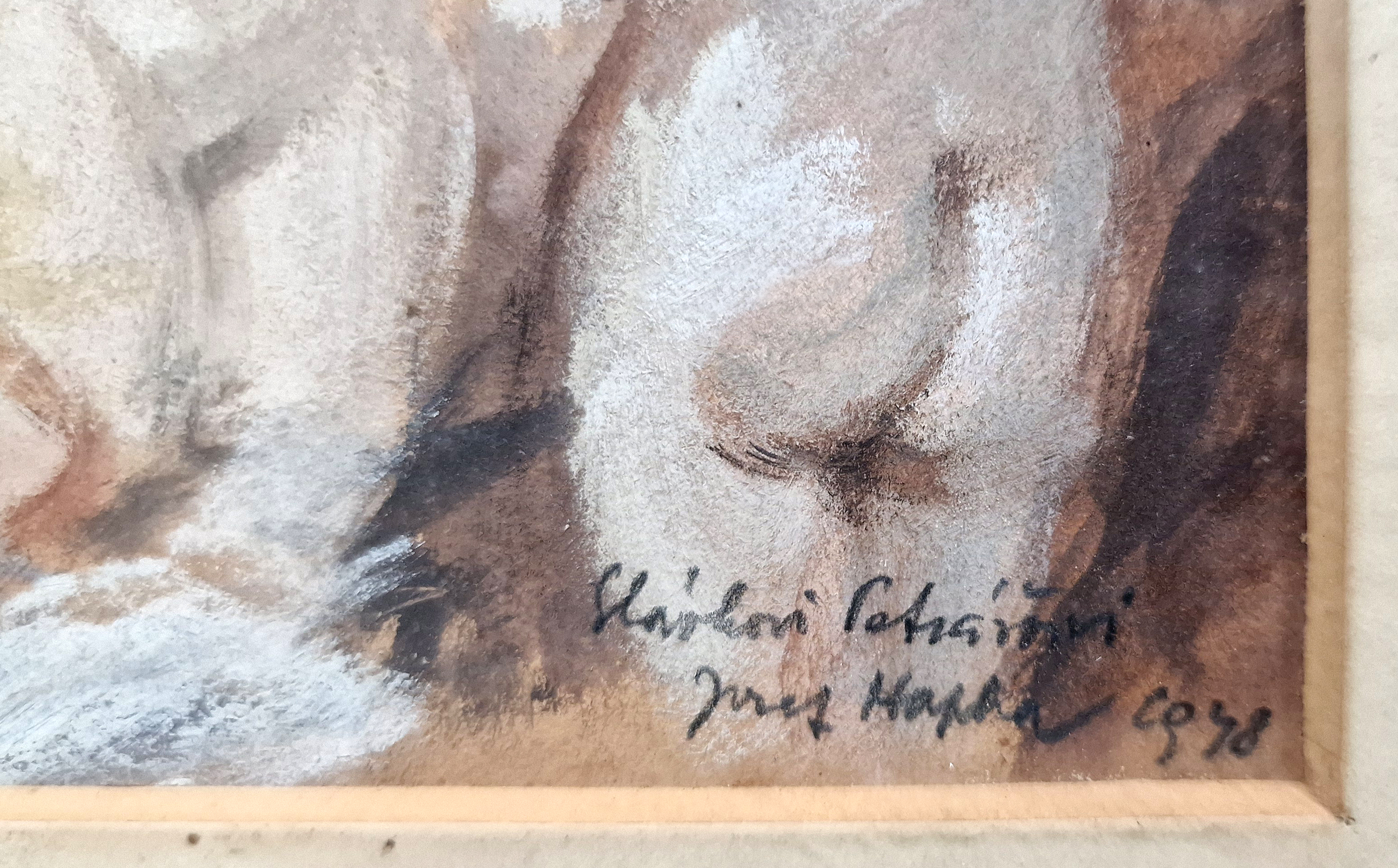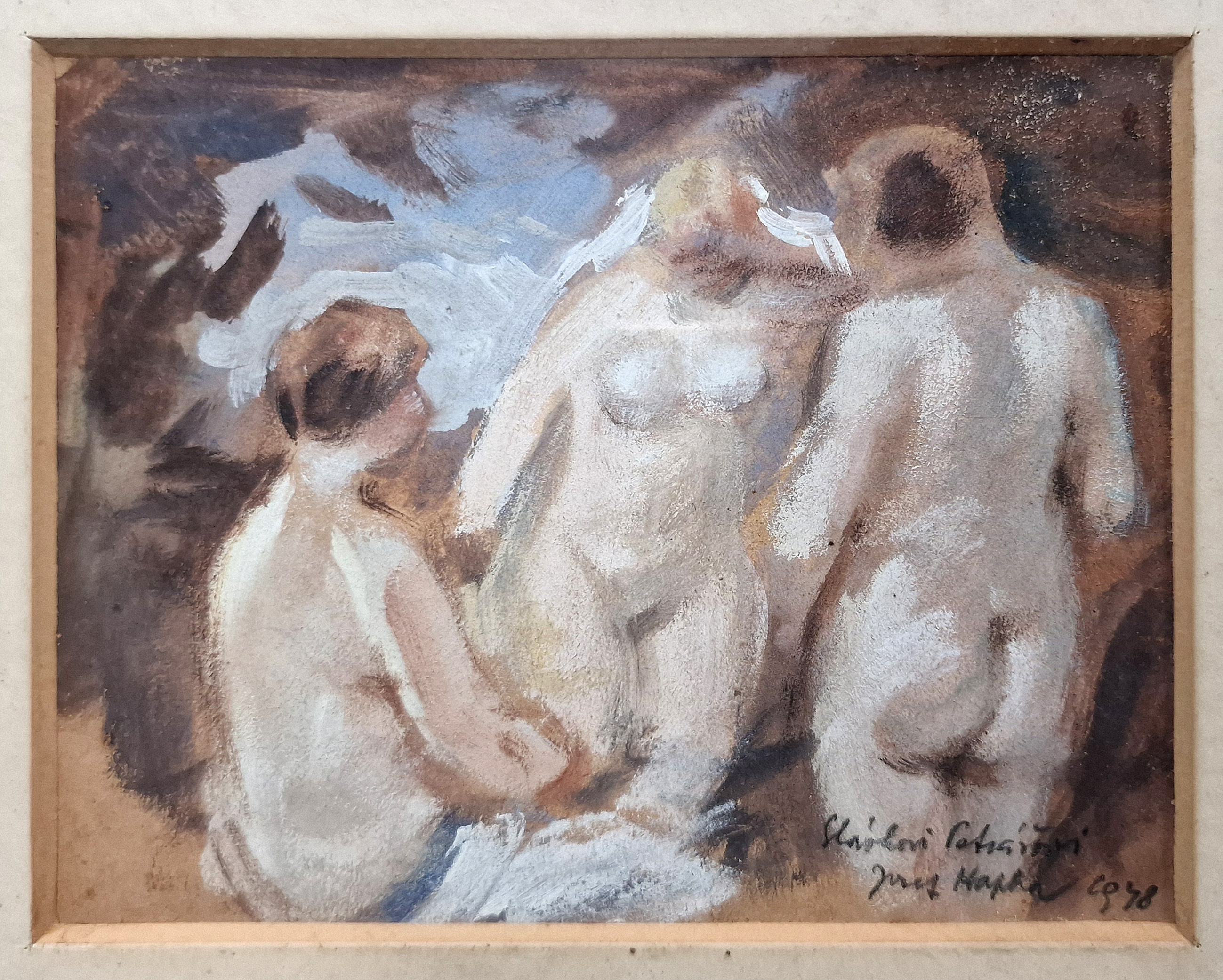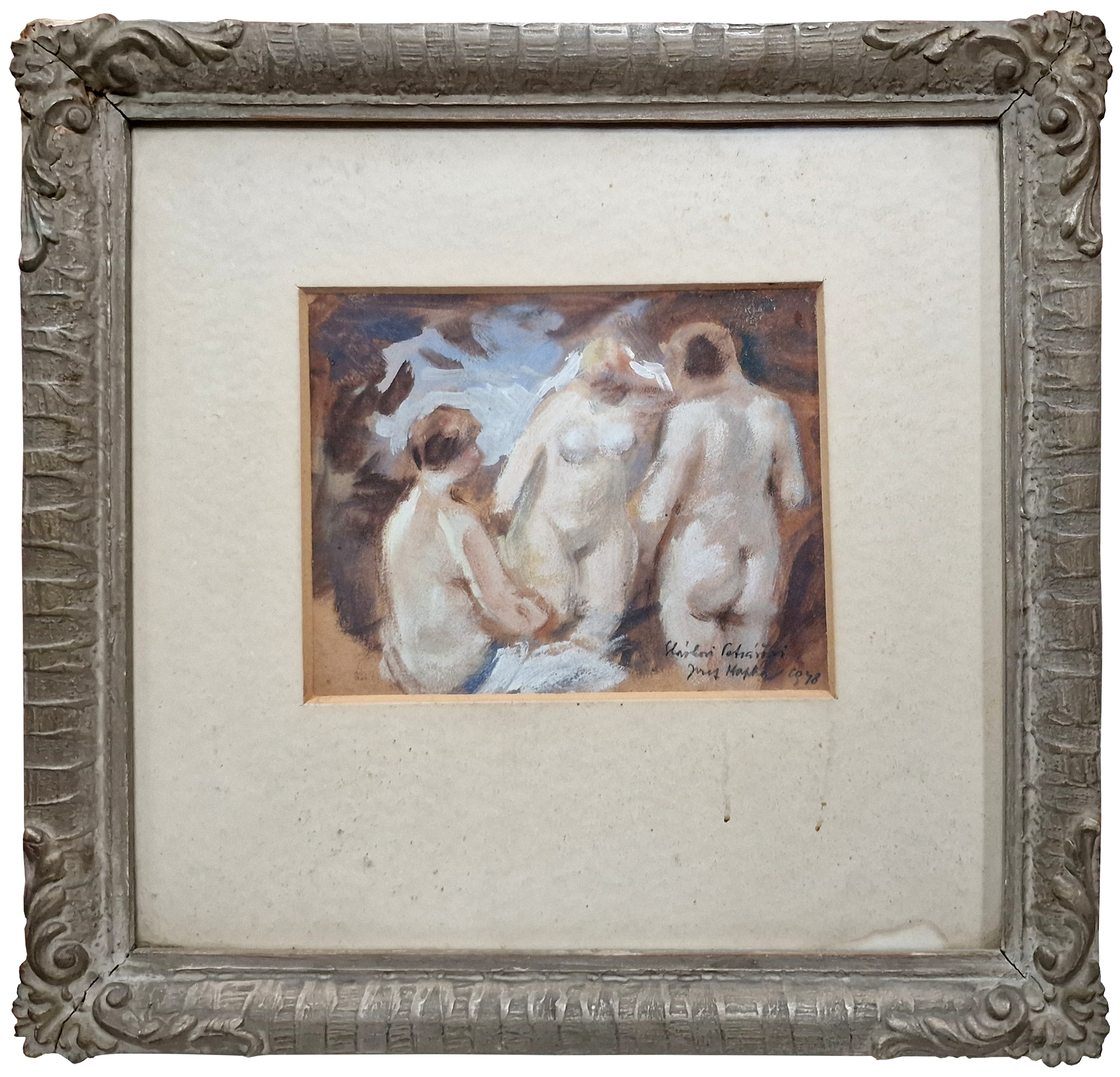 POPIS: Olej na lepence, rozměr ve výřezu 12,5 x 16 cm, zaskleno
