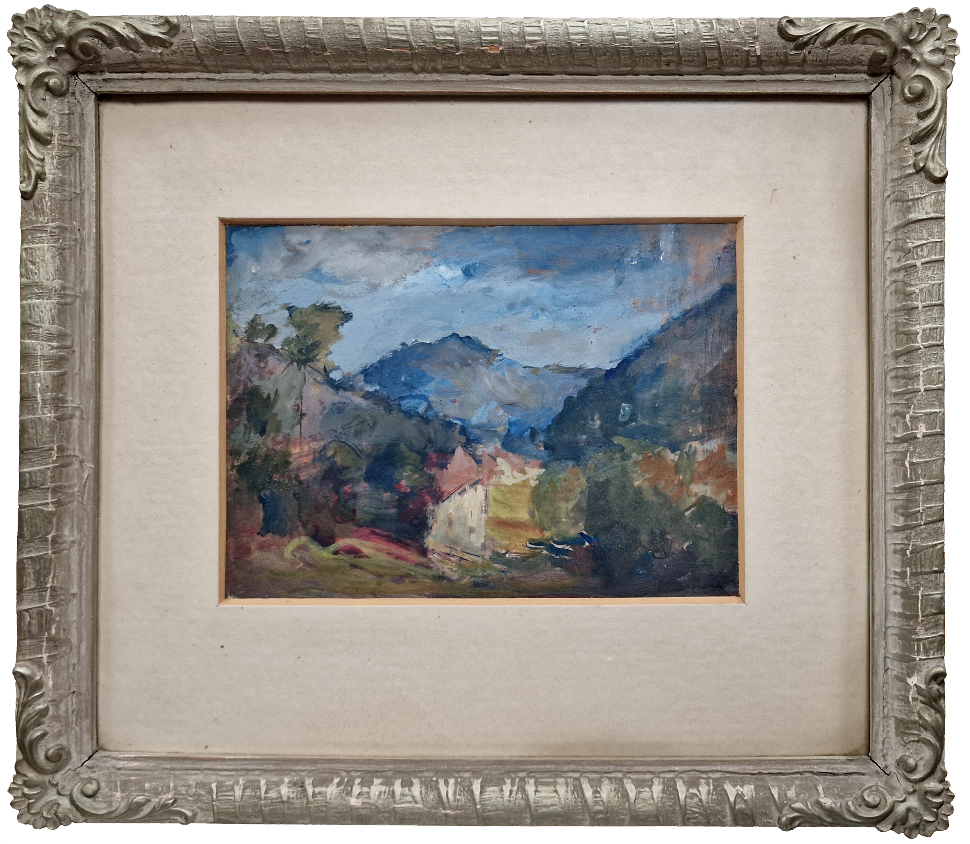 POPIS: Tempera na lepence, tozměr ve výřezu 16 x 22 cm, zaskleno