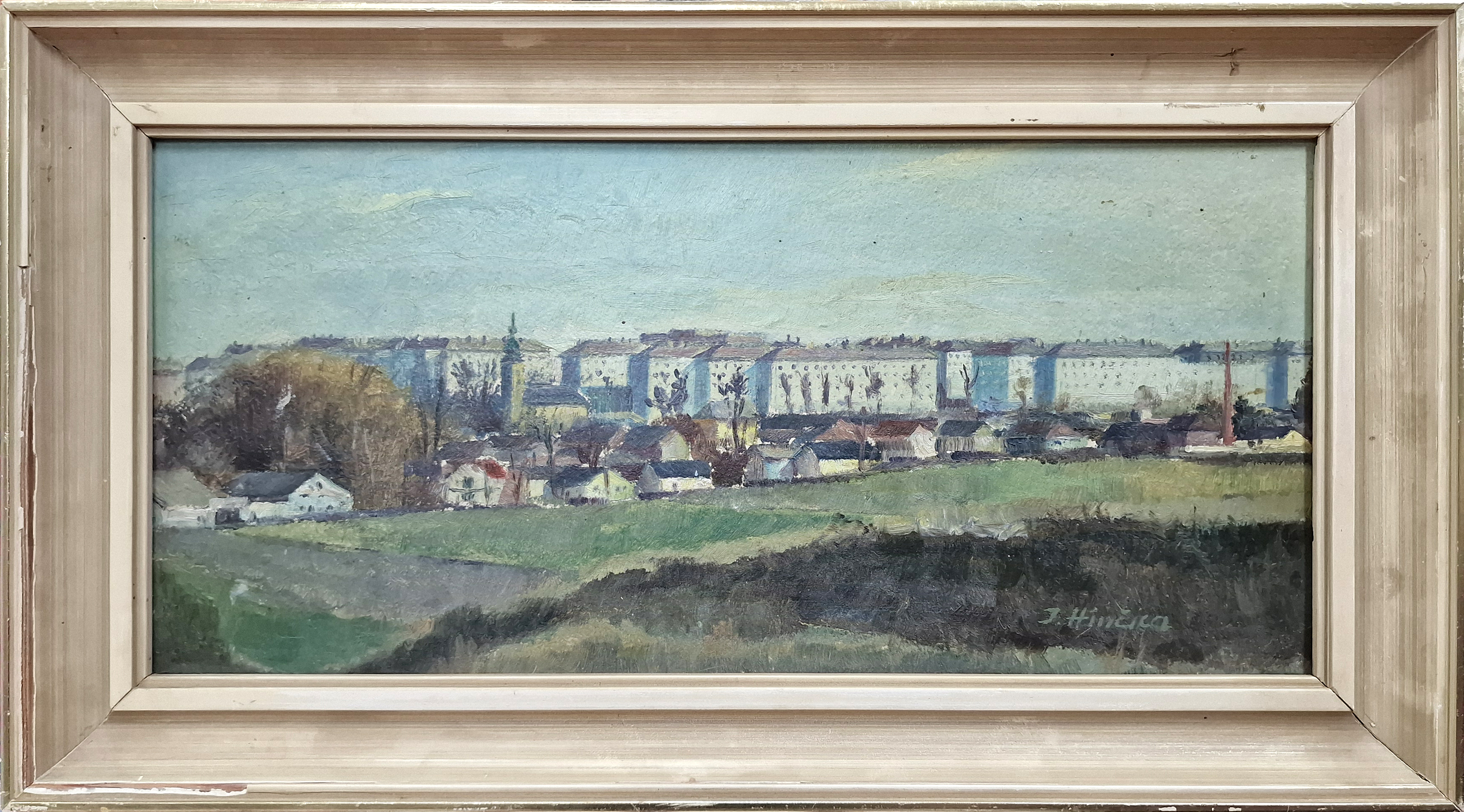 POPIS: Olej na lepence, rozměr 17 x 36 cm