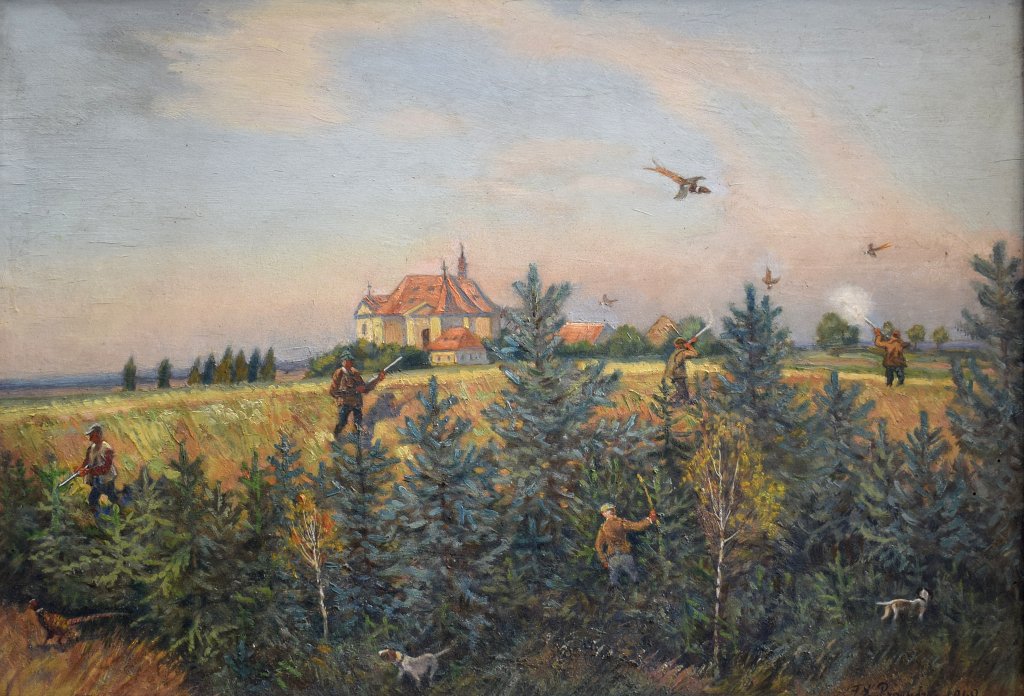 O AUTOROVI: Narozen 14. října 1887 ve Střebsku u Příbramy. Mladý František projevoval malířský talent již od útlého dětství - svůj první olej údajně namaloval již v 6 letech - ale otec se rozhodl, že jej pošle na Obchodní školu. Po prvním ročníků bylo zřejmé, že tento typ studia nebyl pro mladého Františka vhodný. Záhy školu opustil a vyučil se malířem pokojů. Majitel pražské firmy Frenzel si brzy všiml výtvarného talentu mladého účedníka a začal jej posílat na opravy nástropních a nástěnných fresek po různých zámcíc v Čechách. Po třech letech praxe, roku 1908, podal mladý František přihlášku na pražskou Akademii a pro svůj talent byl přijat. Srdcem tíhnul ke krajinomalbě, ale nakonec docházel k vyhlášeným figuralistům (prof. Vlaho Bukovac, prof. Hanuš Schweiger a prof. Max Pirner). Procházka byl již v dospívajícím věku samotářem a veškerou svou energii vrhal do studia umění. Díky tomu získal dva stipendijní pobyty v zahraničí, během nichž navštívil Rakousko, Španělsko, Francii, Itálii, Německo, Belgii a Holandsko. Procházkova první samostatná výstava proběhla již roku 1910 v Brandýse nad Labem. Uspořádali ji místní studenti a obsahovala na 60 obrazů a kreseb. Ze soupisu vystavených děl je zřejmé, že se v drtivé většině jednalo o krajinomalby a městské partie. Výstavy měl v Brandýse posléze ještě dvě - roku 1914 a 1916. Zásadní zlom v tvorbě přišel po první světové válce, kdy se F. X. Procházka seznámil se středoškolským profesorem a zoologem Jiřím Jandou, pozdějším zakladatalem pražské ZOO. Malířova odvěká vášeň pro faunu se od té doby plně projevila i ve výtvarném úsilí. Díky kontaktům se skupinou předních zoologů začal pilně studovat anatomii zvířat a již z kraje dvacátých let vypracoval ilustrace do učebnice Přírodopis pro školy střední a později do encyklopedie Velký přírodopis. Procházka posléze získal stipendium pro cestování po evropských zoologických zahradách, ve kterých studoval cizokrajná zvířata. Díky své nesmírné pracovitosti zachytil i několik městských či přístavních scenérií - například v Hamburku nebo Anvers. Své zkušenosti později zúročil při tvorbě dalších učebnic přírodopisu, ilustrací do přírodovědných časopisů, návrzích na pohlednice, ale i ve volné tvorbě. Na jeho výstavy v Topičově saloně ve dvacátých letech chodily celé rodiny i s dětmi, jelikož v Praze nebyla jiná možnost, kde si prohlédnout lvi, tygry, africké slony, plameňáky a další exotickou faunu. Dokonce i umělecká kritika oceňovala výtvarnou kvalitu Procházkovy malby - obdiv sklízel zejména pro svůj koloristický a světelný cit a důslednou anatomii zvířat. Vedle těchto cyklů malíř dále tvořil krajinomalby ze svého milovaného Polabí. Během třicátých a čtyřicátých let 20. století se více soustředil na žánrové obrazy z prostého života polabského venkova. Zachycoval sedláky při orbě, pasáčky se stádem ovcí, babky s nůší a kozou či obrazy zvířat samotných - krávy či kozy na pastvě, psi na dvorku, husy, kachny, různé druhy ptactva apod. Začalo ho velmi silně fascinovat soužití zvířat a člověka. Dalším silným tématem Procházkovy vyzrálé tvorby bylo zachycování přeměny Polabí. Od 30. let se začal regulovat tok Labe, což výrazně změnilo tvář okolní krajiny. Malířův zájem se rovněž soustředil i na sociální tématiku. Zachycoval zanedbané kouty brandýského kraje - obydlí chudiny, opuštěné domy - nebo tábory dělníků, kteří pracovali na regulaci řeky. Vytvořil tím důležité dokumentární dílo, navíc podpořené malířovou uměleckou kvalitou. František Xaver Procházka přežil obě světové války mimo válečné dění, jelikož již v mladých letech mu byla udělena neschopnost vojenské služby. Během čtyřicátých let tedy mohl dále cestovat svým milovaným krajem a živou paletou zachycovat dynamické proměny konce první poloviny 20. století ve své domovině. Malíř zemřel náhle na Štědrý den roku 1950, tedy v době nastupující kolektivizace, která za několika málo let absolutně přetvořila zemědělskou krajinu, kterou tolik miloval.