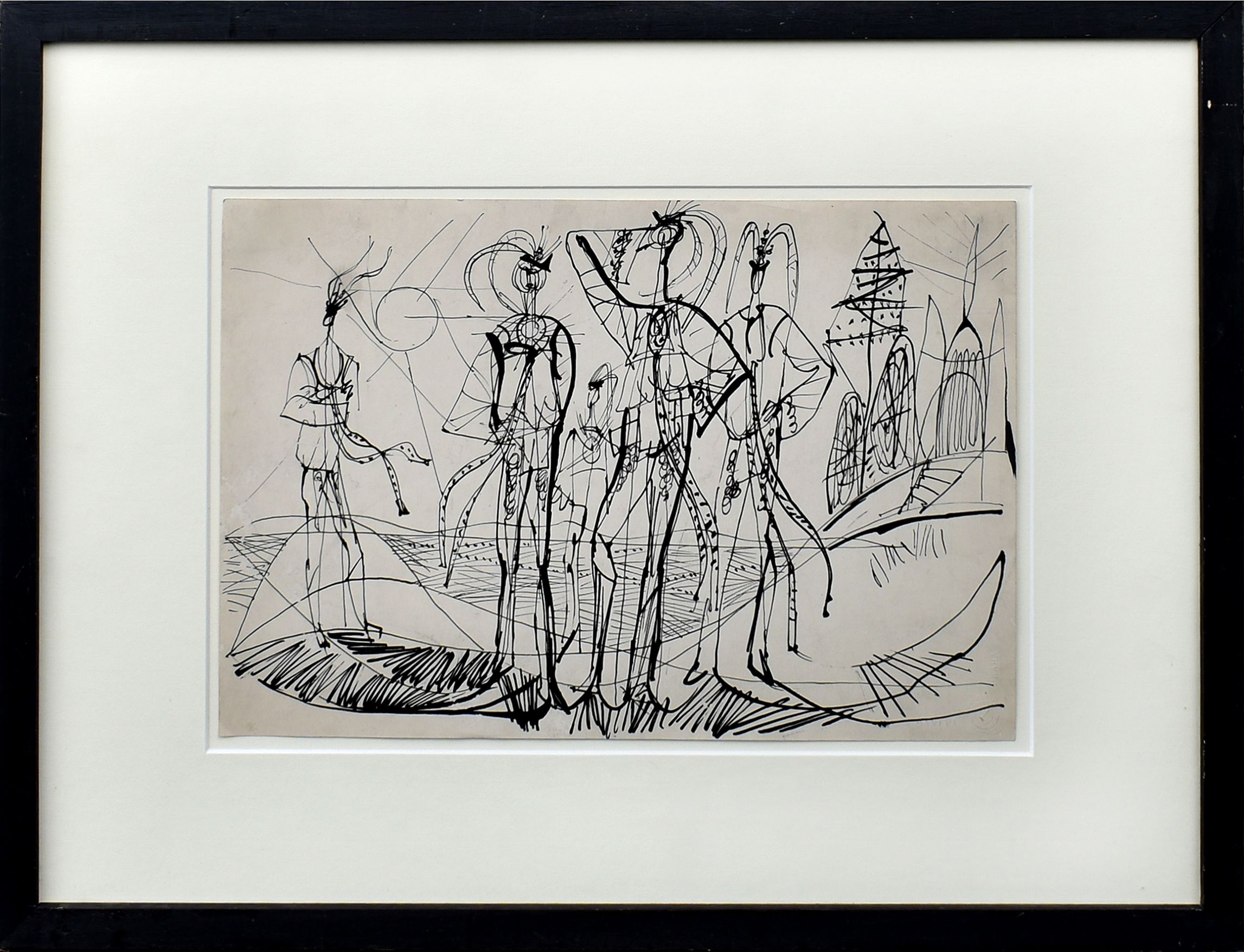 POPIS: Tuš, rozměry ve výřezu pasparty: 26,5 x 37,5 cm, zaskleno, nesignováno