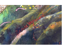 POPIS: Originál ilustrace, Jakub a zázračná fazole. Akvarel na ručním papíru, rozměry: 39 x 33,5 cm