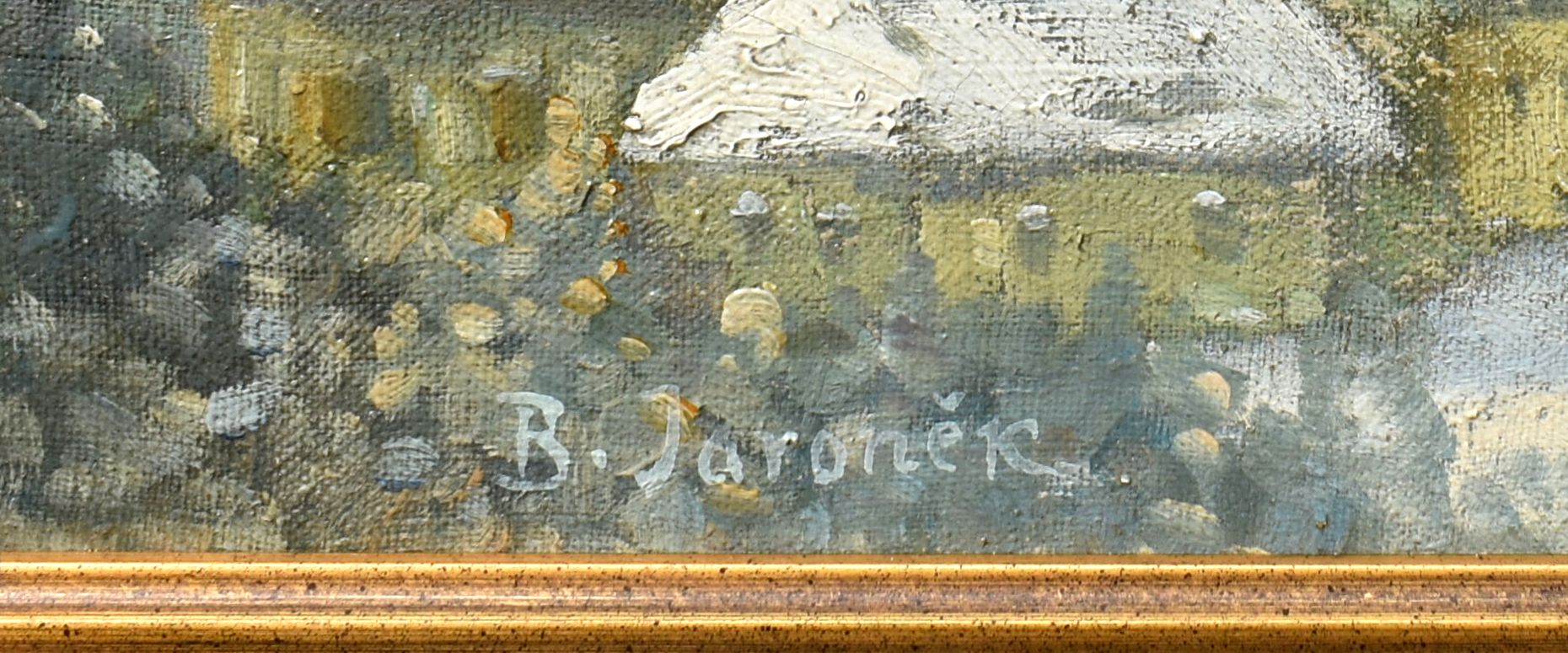 O AUTOROVI: Narodil se 23. 4. 1866 ve Zlíně a zemřel 18. 1. 1933 tamtéž. Malíř, grafik, zakladatel Valašského muzea v přírodě v Rožnově pod Radhoštěm. Narodil se 23.4. 1866 ve Zlíně a zemřel 18.1. 1933 také ve Zlíně. Grafik, malíř (valašská krajina), temperové malby, akvarely, oleje dřevoryty. Absolvoval Státní odbornou školu pro umělecko řemeslné zpracování dřeva ve Valašském Meziříčí společně s F. Úprkou. První umělecké zkušenosti získával v letech 1889 - 1896 v ateliéru v Pešti. Pracoval jako modelér a kompozitér v mnoha uměleckoprůmyslových závodech doma i v zahraničí. Podnikl cesty po Palestině, Řecku, Sýrii, Malé Asii, Turecku, Itálii a Francii.V roce 1909 založil společně se svým bratrem Aloisem "umělecko výtvarné dílny", kde vyráběli např. dřevěné malované truhličky, kazety, dózy, dřevěné hračky, pohlednice, tkané polštáře, kabelky, paravány, gobelíny (gobelínovou manufakturu vedla jeho sestra Julie). V roce 1911 pak založili malírnu keramiky a porcelánu. Inicioval založení Valašského musejního a národopisného spolku v roce 1911 (v letech 1911 - 1926 byl jeho předsedou), jehož hlavním cílem bylo založení Valašského muzea v přírodě v Rožnově pod Radhoštěm. Díla Bohumíra Jaroňka lze shlédnout v