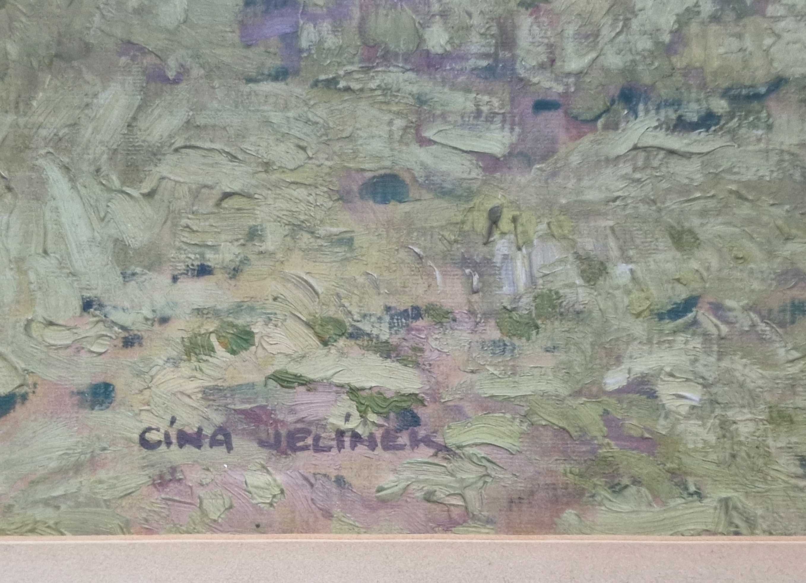 POPIS: Olej na lepence, rozměr ve výřezu 26 x 34 cm, zaskleno, drobné flíčky v kresbě