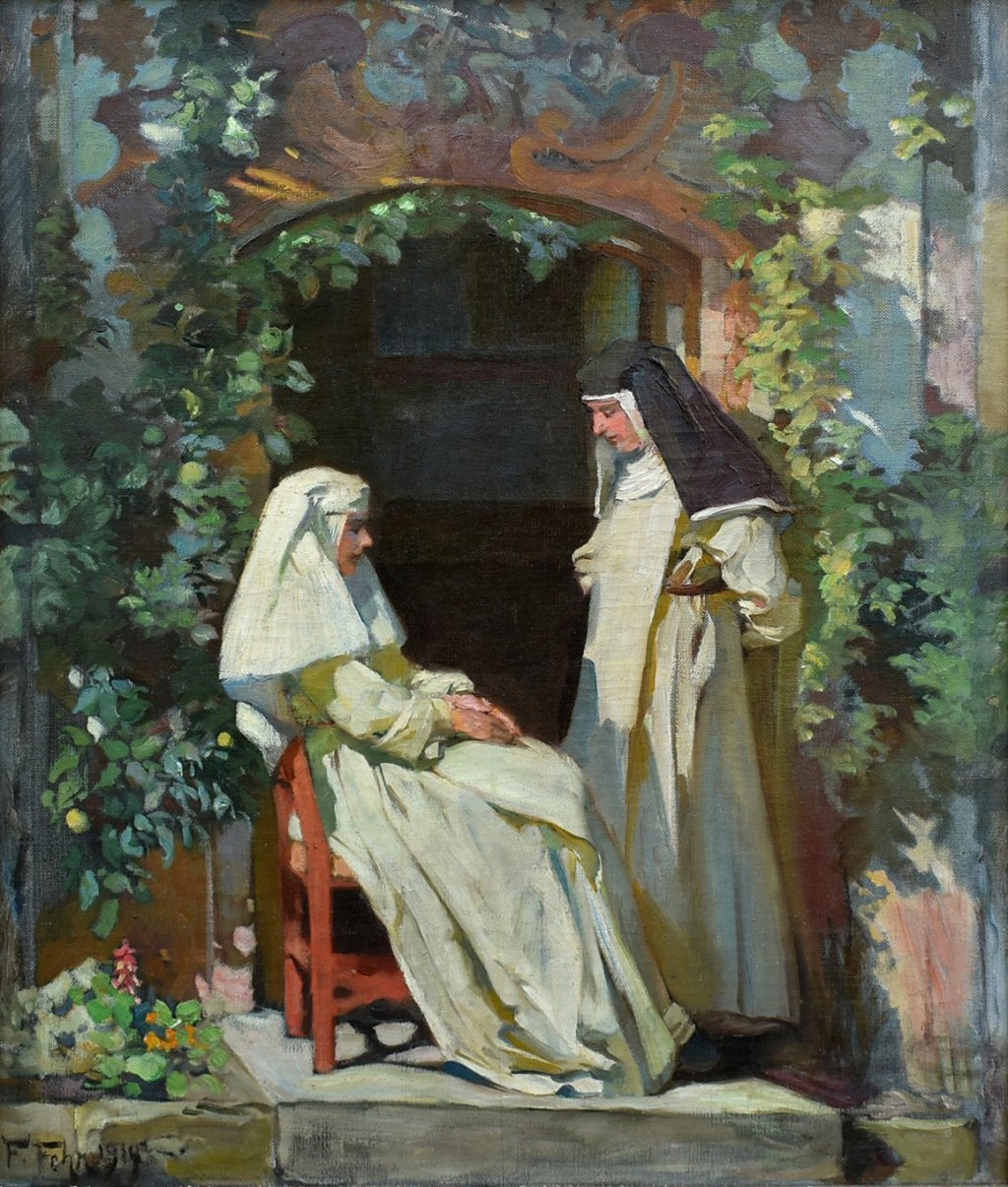 O AUTOROVI: Friedrich Fehr (24. května 1862 – †. září 1927) byl německý malíř . Je považován za představitele historicismu. Friedrich Fehr se narodil v roce 1862 jako syn notáře Kaspara Fehra a jeho ženy Anny ve Wernecku v Dolních Frankách. Ve Würzburgu navštěvoval Realgymnasium a v letech 1878 až 1884 studoval na Akademii výtvarných umění v Mnichově. Stipendium Nadace Martinavon Wagnera mu umožnilo studovat v Itálii vletech 1885 až 1890. Po roce 1890 se Friedrich Fehr usadil v Mnichově a založil tam soukromou malířskou školu spolu s Ludwigem Schmid-Reuttem a Paulem Nauenem, ze které se vynořili známí umělci jako Emil Nolde, Clara Rilke-Westhoff, Hans Meyer-Kassel a Erich Kuithan. V roce 1897 se Friedrich Fehr oženil s tehdy 29letou Bertou Roloffovou(1868 – 1957). Fehr obdržel v roce 1897 hovor na Akademii Karlsruhe. Od dubna do července 1899 vyučoval Friedrich Fehr ve třídě kresby a malby podle živého modelu na Ženské akademii Mnichovského uměleckého sdružení a ve stejném roce následovala výzva profesora na Akademii Karlsruhe, kde vedl malířskou třídu až do jejího rozpuštění v roce 1923. Wladimir Lukianowitsch von Zabotin, Wilhelm Hempfing, Margarethe von Reinken a Alexander Kanoldt byli mezi jeho studenty během jeho pobytu v Karlsruhe. V letech 1904 až 1919 vedl také třídu figurální malby na Karlsruhe School of Painters. Po odchodu do důchodu se Fehr v roce 1924 s rodinou přestěhoval do Pollingu,kde žil až do své smrti 29. září 1927. Friedrich Fehr je pohřben na hřbitově Stiftskirche Heilig Kreuz ve volbách. Friedrich Fehr byl zvěčněn Hermannem Billingem a Hermannem Binzem ve fontáně na Náměstí Stephanplatz v Karlsruhe.