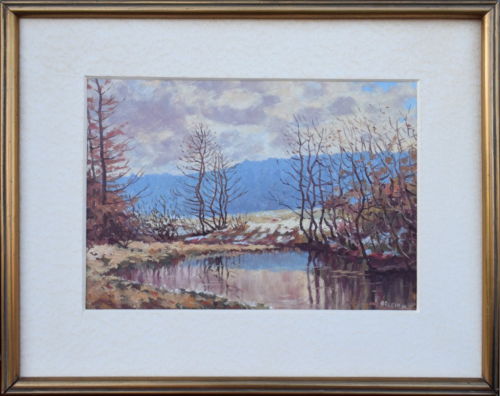 POPIS: Olej na papíru, výřez pasparty: 25,5 x 37 cm, celkové rozměry: 41 x 53cm, zaskleno
