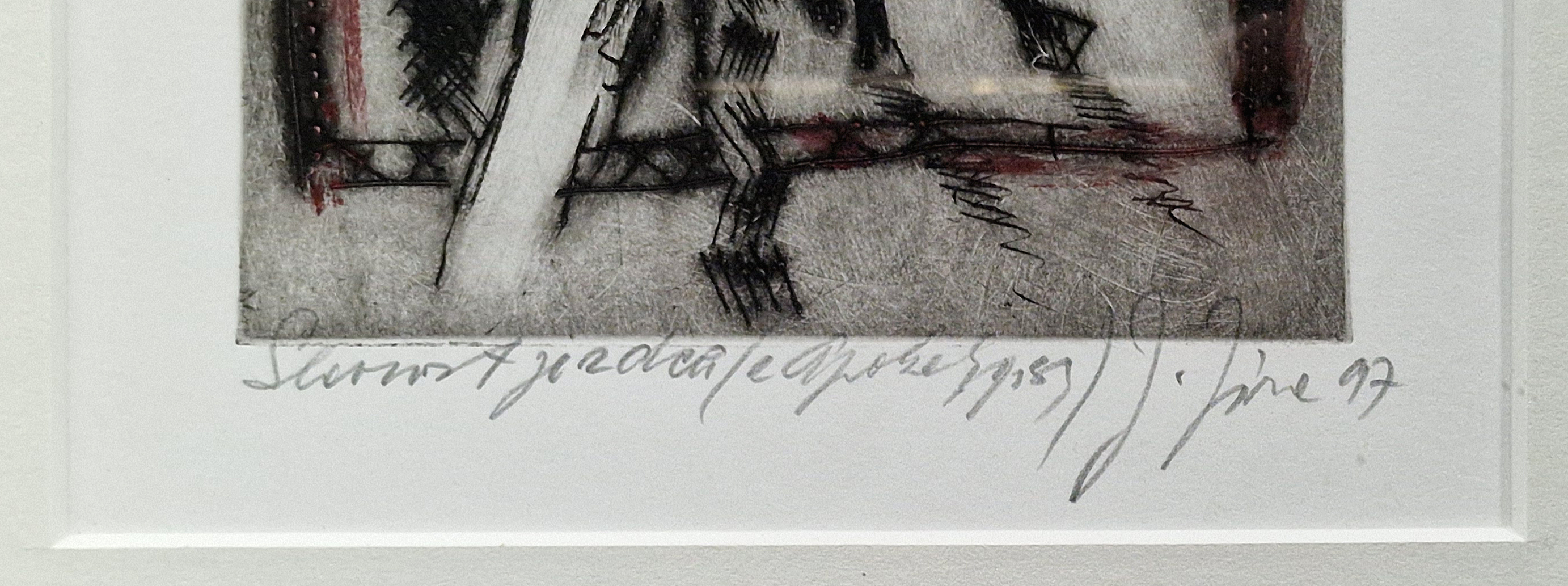 POPIS: Lept s kresbou, rozměr ve výřezu: 16,5x13 - zaskleno