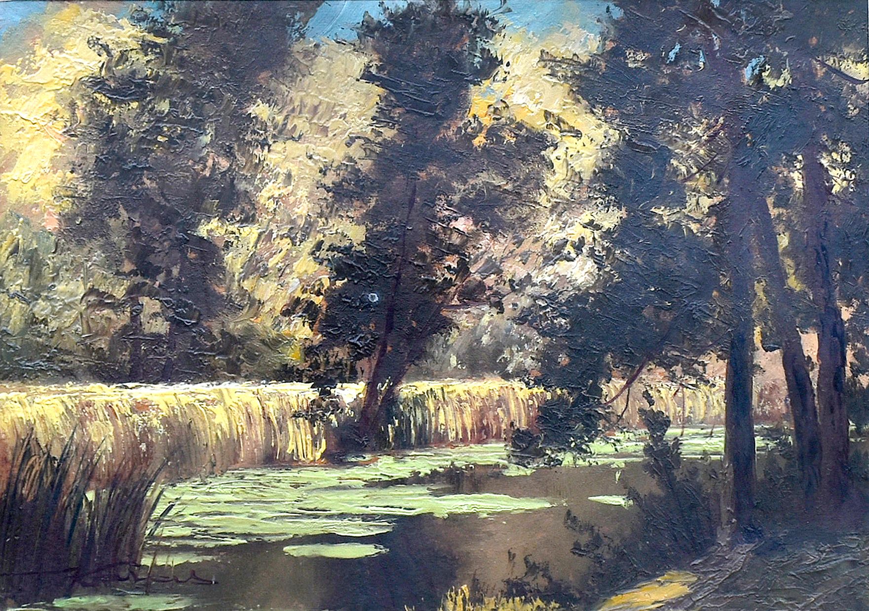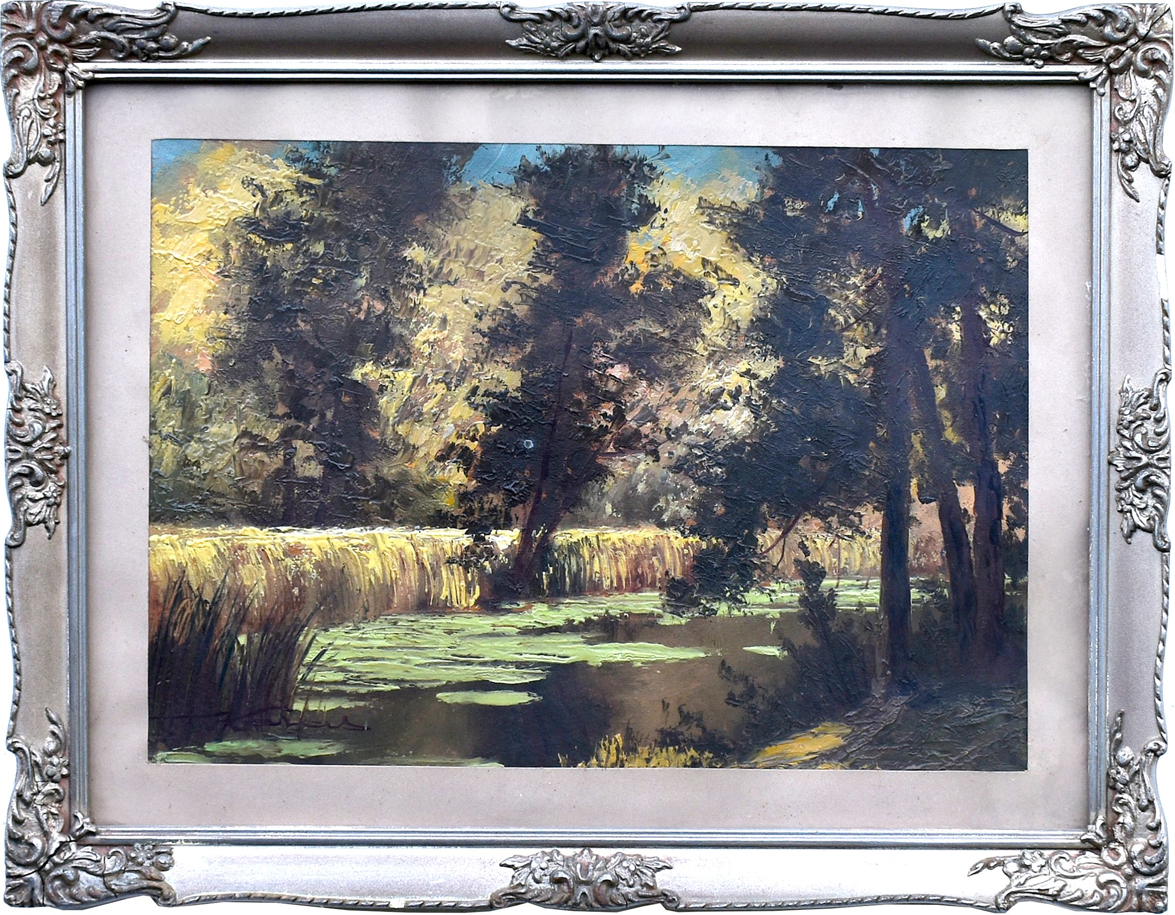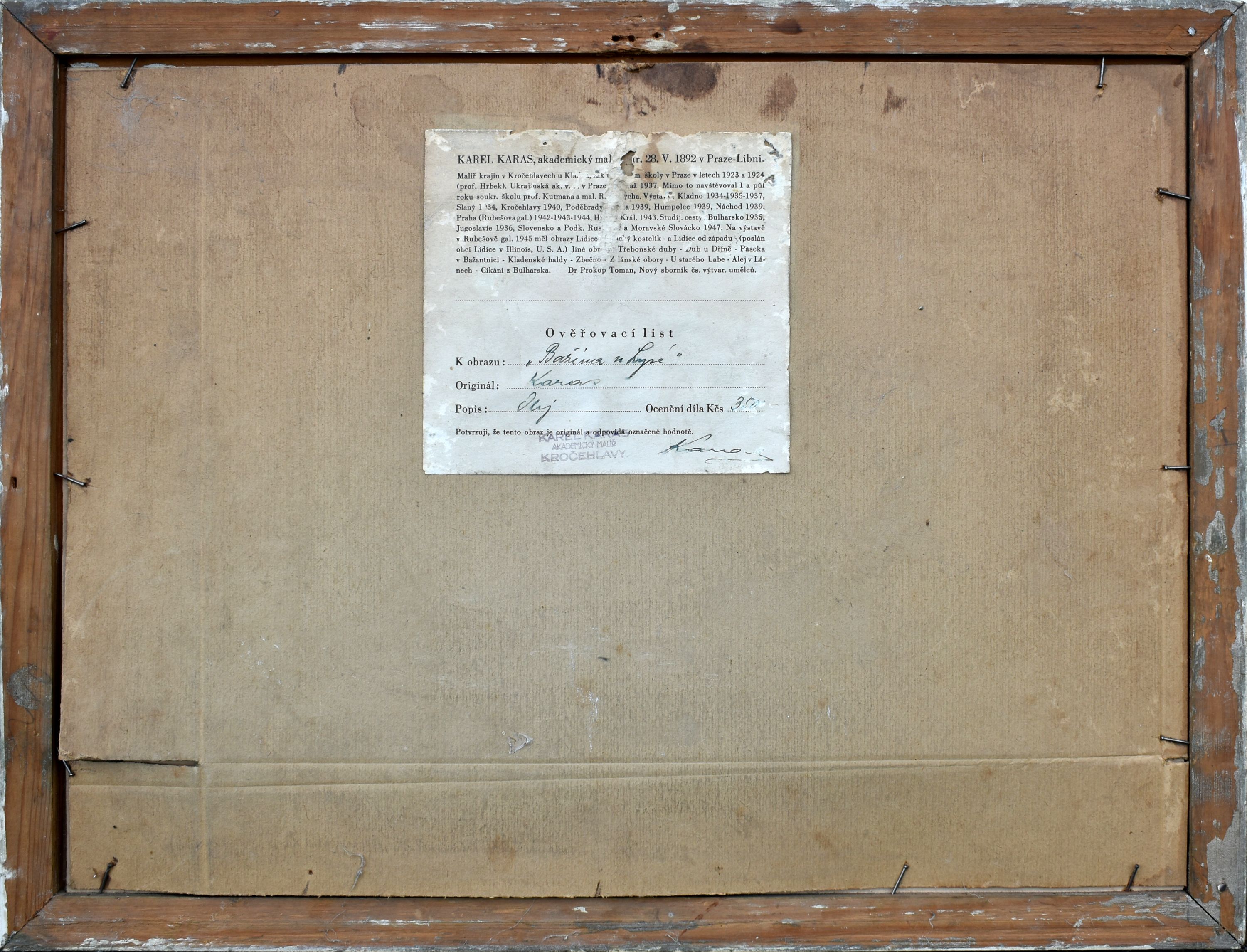 POPIS: Olej na kartonu, rozměry ve výřezu pasparty: 24 x 34 cm, zaskleno