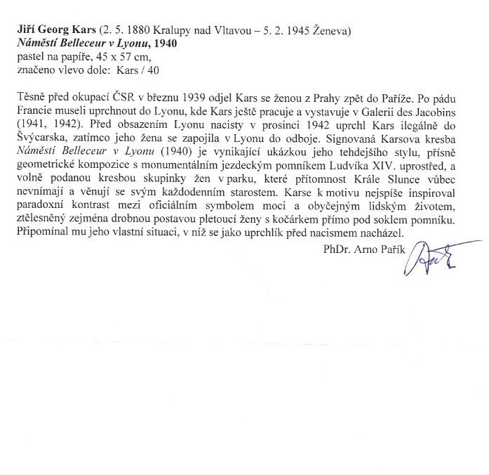 POPIS: Pastel na papíře, rozměr 45 x 57 cm, zaskleno. Přiloženo posouzení PhDr. Arno Paříka