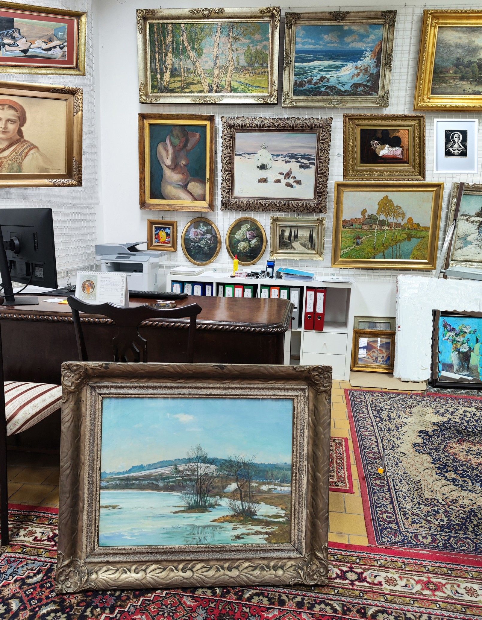 POPIS: Olej na lepence, rozměr 49 x 64,5 cm, rozměry s rámem: 74 x 88 cm, zaskleno