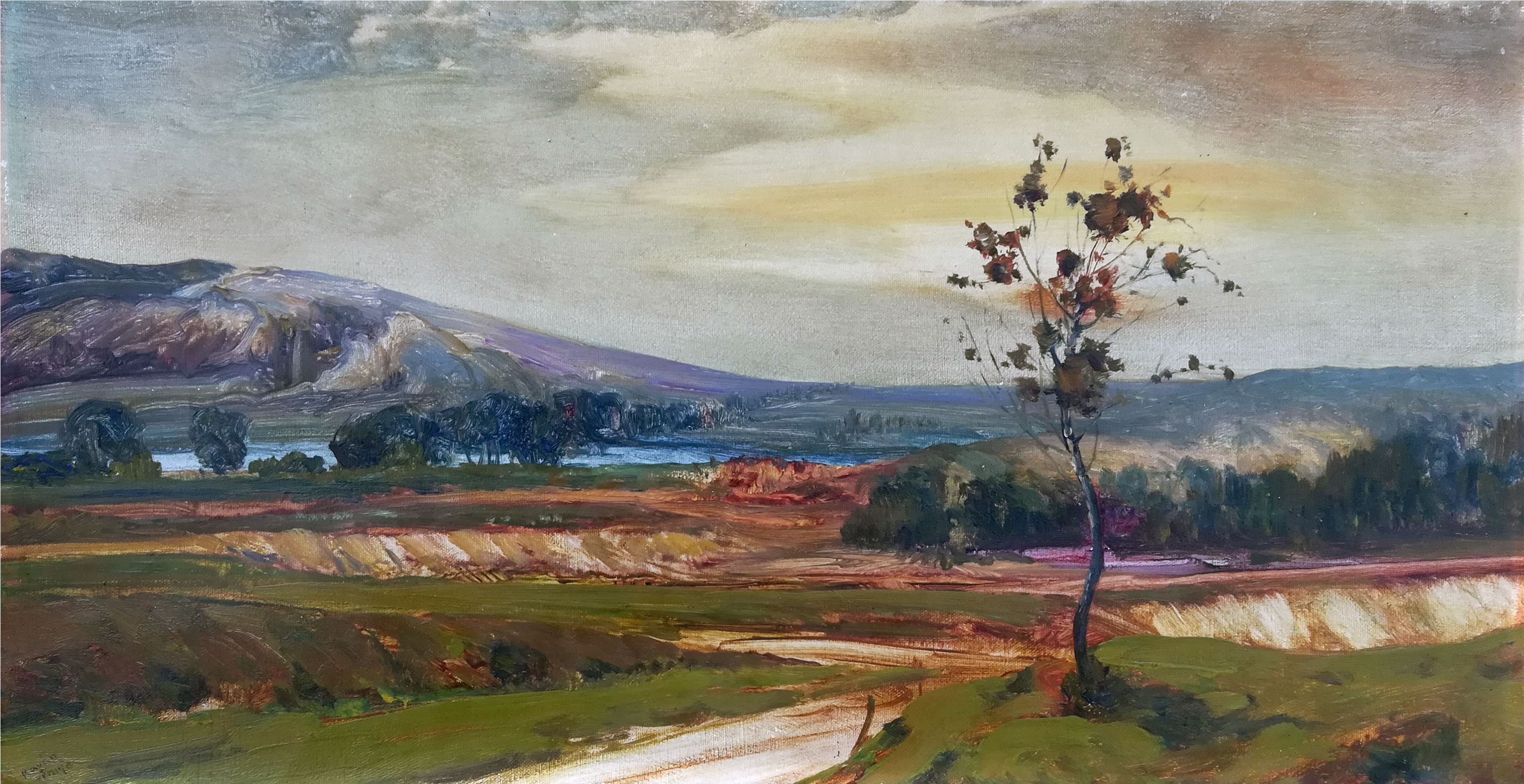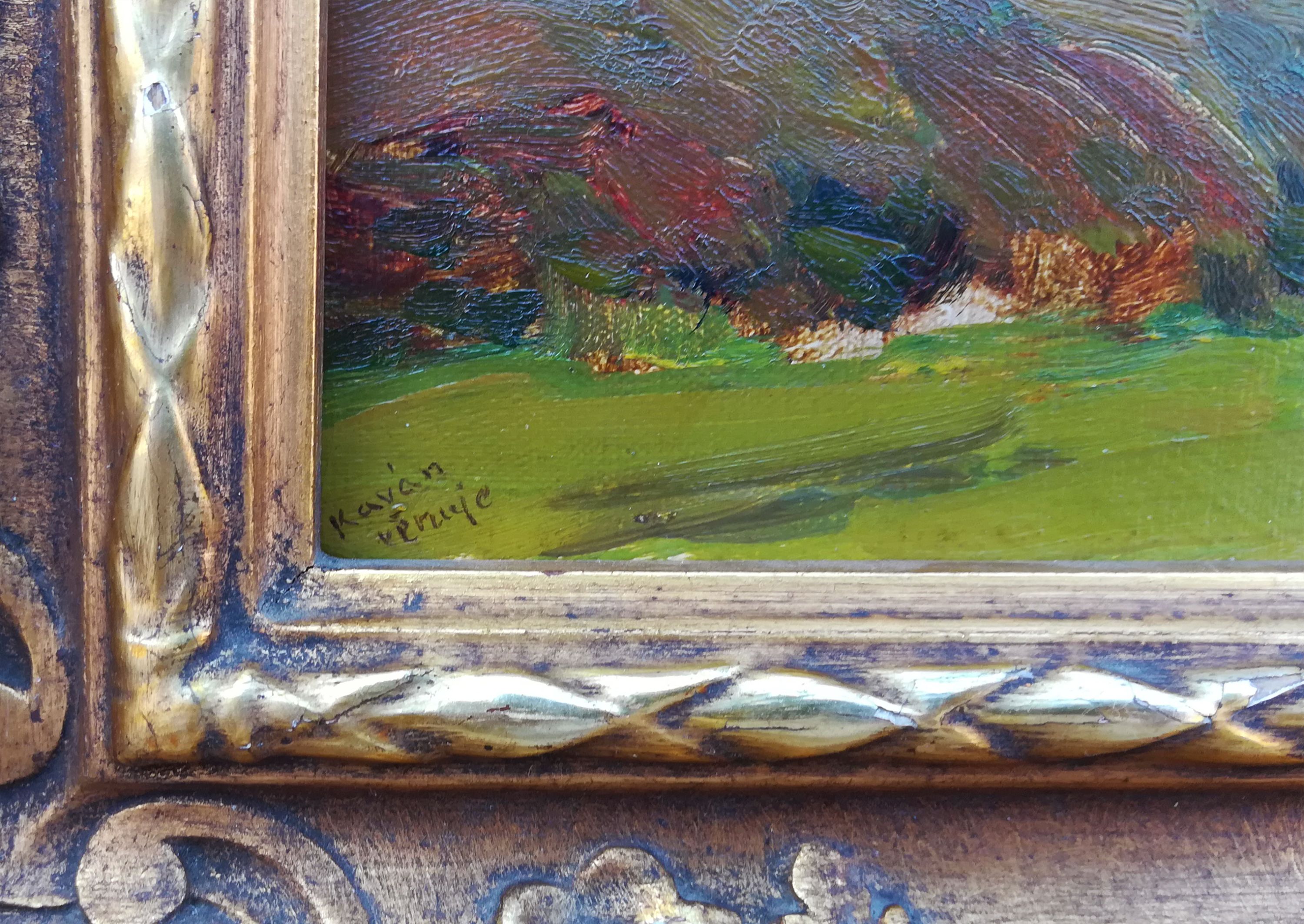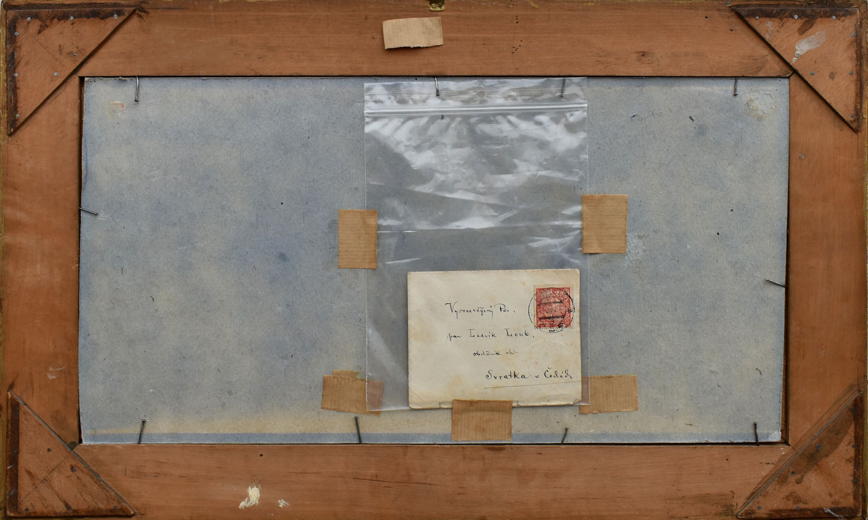 POPIS: Olej na plátně, podloženo lepenkou, rozměry: 25 x 47,5 cm, zaskleno. Přiložen dopis Františka Kavána