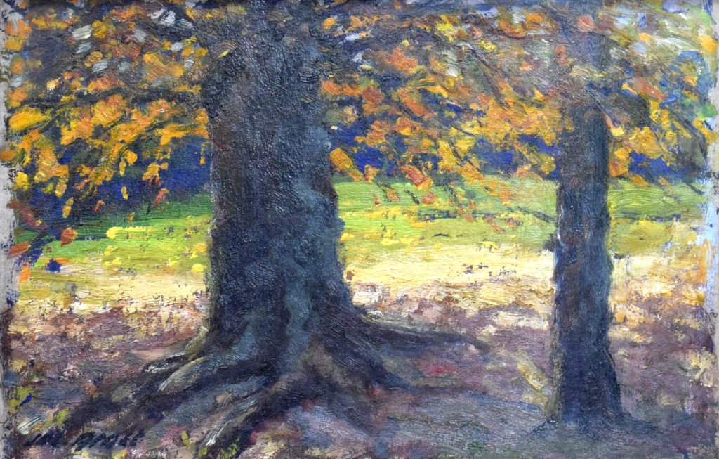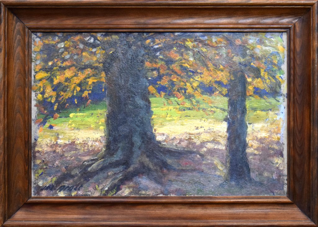 POPIS: Olej na lepence, rozměr 19 x 29 cm, zaskleno