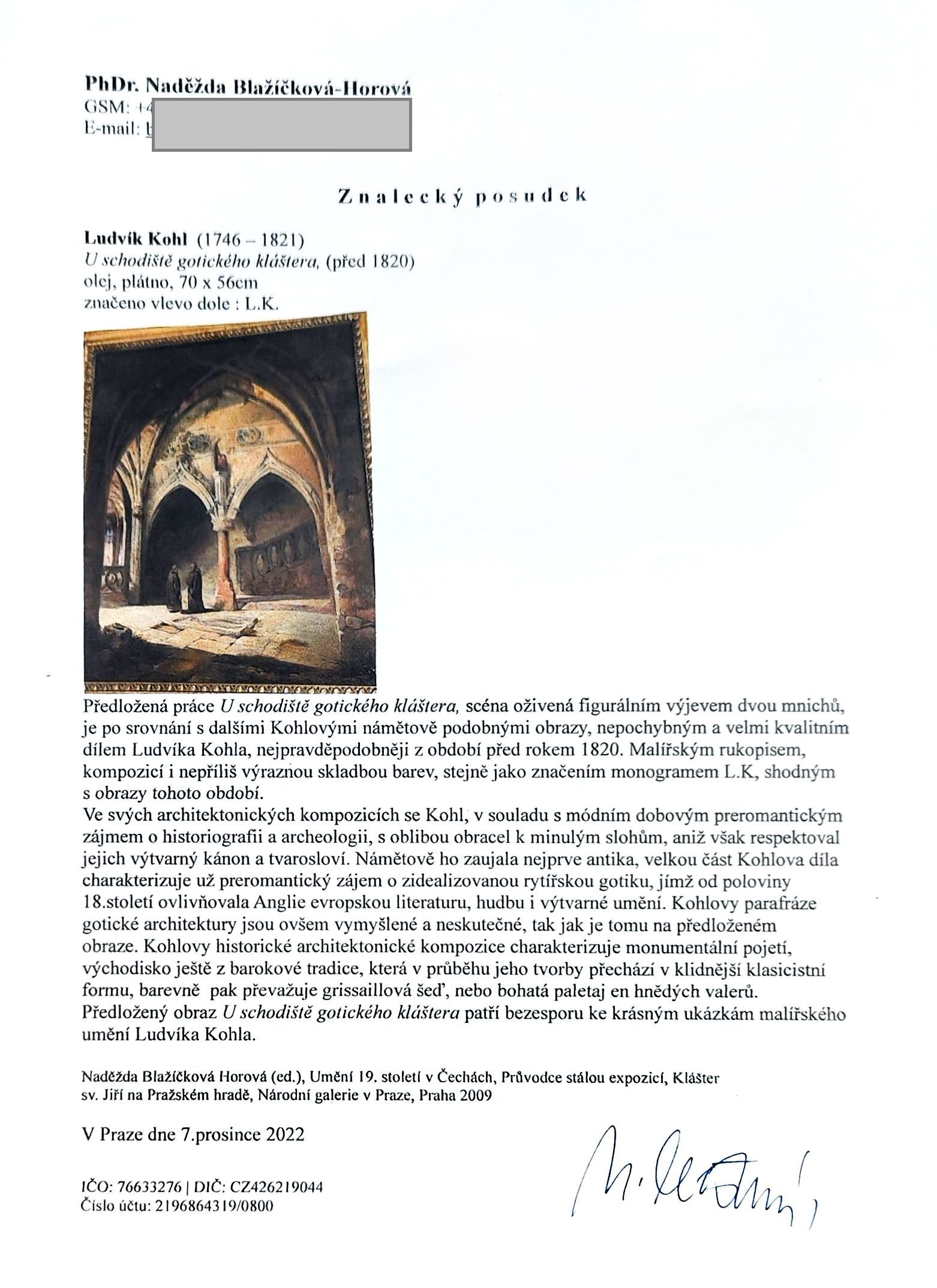 POPIS: Olej na plátně, rozměry: 65 x 49,5 cm, přiložen posudek PhDr. Naděždy Blažíčkové