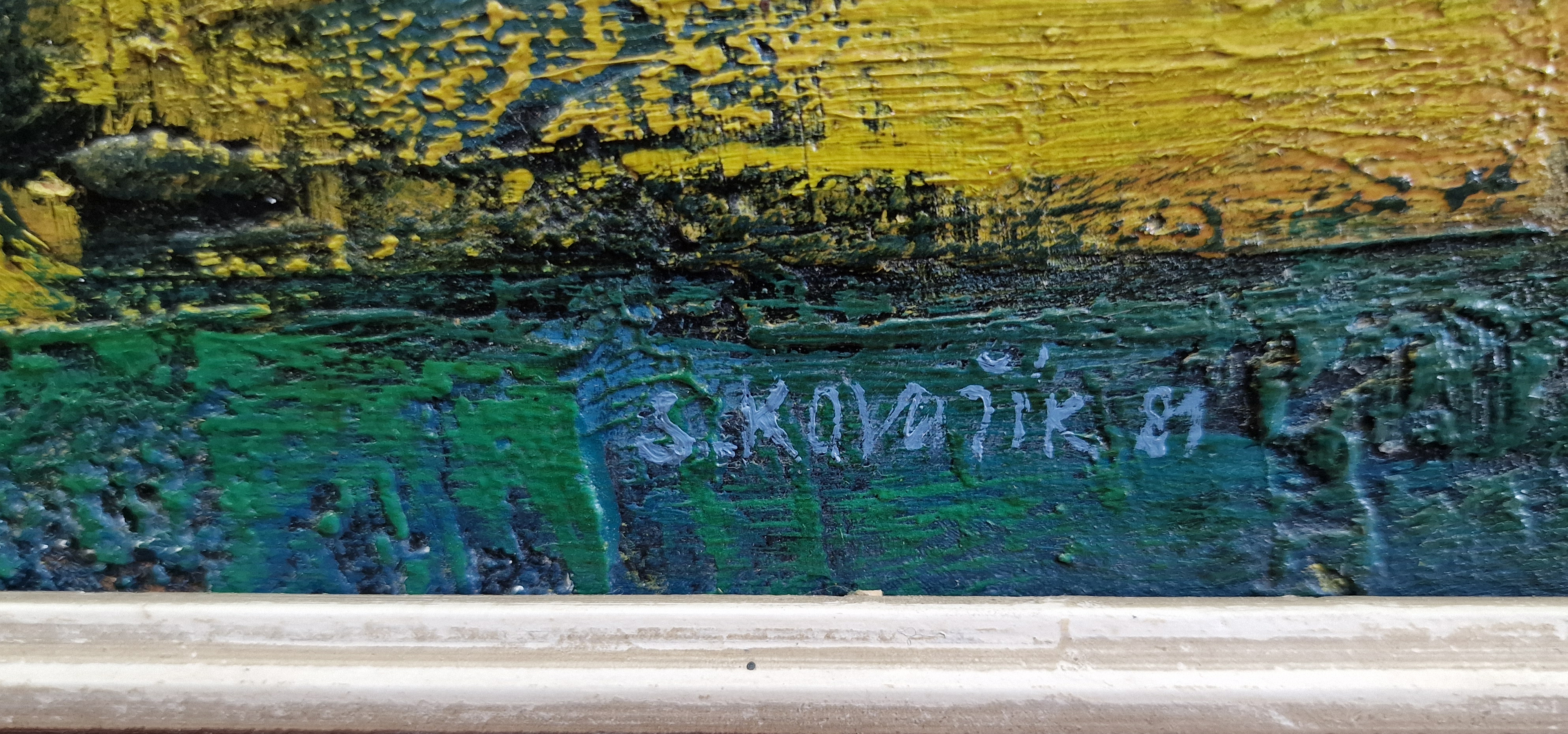 O AUTOROVI: Narodil se 22. 9. 1923 v Olomouci – Holici. Studoval u prof. V. Hrocha na škole umění ve Zlíně a u profesora Emila Filly na VŠUP v Praze, 1947 se stal členem Skupiny olomouckých výtvarníků, po jejím zániku členem SČVU, skupin Parabola a Konfrontace a od 1990 je členem Spolku olomouckých výtvarníků. Pracoval mj. jako malíř a asistent šéfa výpravny v Českém divadle v Olomouci, 1957-1984 jako asistent výpravy a provozní architekt Divadla O. Stibora v Olomouci. V letech 1965-1967 pracoval jako externí pedagog Katedry výtvarné výchovy FF UP v Olomouci. Po studijních cestách do Anglie a Německa koncem 60. let byl zaujat pop-artem a lettrismem, pracoval s figurálními náměty, objekty masmédií, se symboly a reáliemi městského života. Malíř Slavoj Kovařík patří k nejvýznamnějším umělcům 2. poloviny 20. století na střední Moravě. V průběhu 50. let se věnoval zejména krajinám a všedním zátiším. Tradiční malířské náměty ovšem ztvárňoval osobitým způsobem navazujícím na meziválečnou tvorbu jeho velkých uměleckých vzorů – především Pabla Picassa a Emila Filly. Dnes je malířovo pozoruhodné směřování k ornamentálně-znakovému zpracování prostých motivů vnímáno jako podstatný příspěvek do vývoje českého poválečného umění. V 60. letech se Kovaříkova tvůrčí energie rozprostřela hned do několika směrů. Již na jejich počátku v jeho tvorbě pozorujeme sílící zájem o civilizační problematiku a město vůbec. V rozsáhlém volném cyklu olejomaleb Města (1960–1963), inspirovaném rodnou Olomoucí, malíř záhy přetavil její panoráma do chvějivé sítě horizontál a vertikál a vzápětí začal ztvárňovat město jako tajemný labyrint v podobě překrývajících se plošných plánů. Jeho tvorba se tak v roce 1963 ocitla na samé hranici tehdy aktuální lyrické geometrické abstrakce.